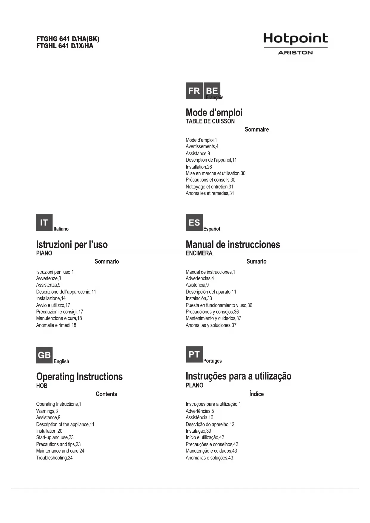 Retrouvez gratuitement la notice de l'appareil FTGHG 641 D H BK HOTPOINT au format PDF.