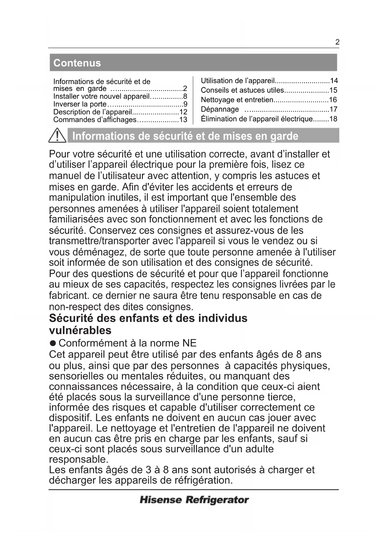 - Élimination de l’appareil électrique p. 18