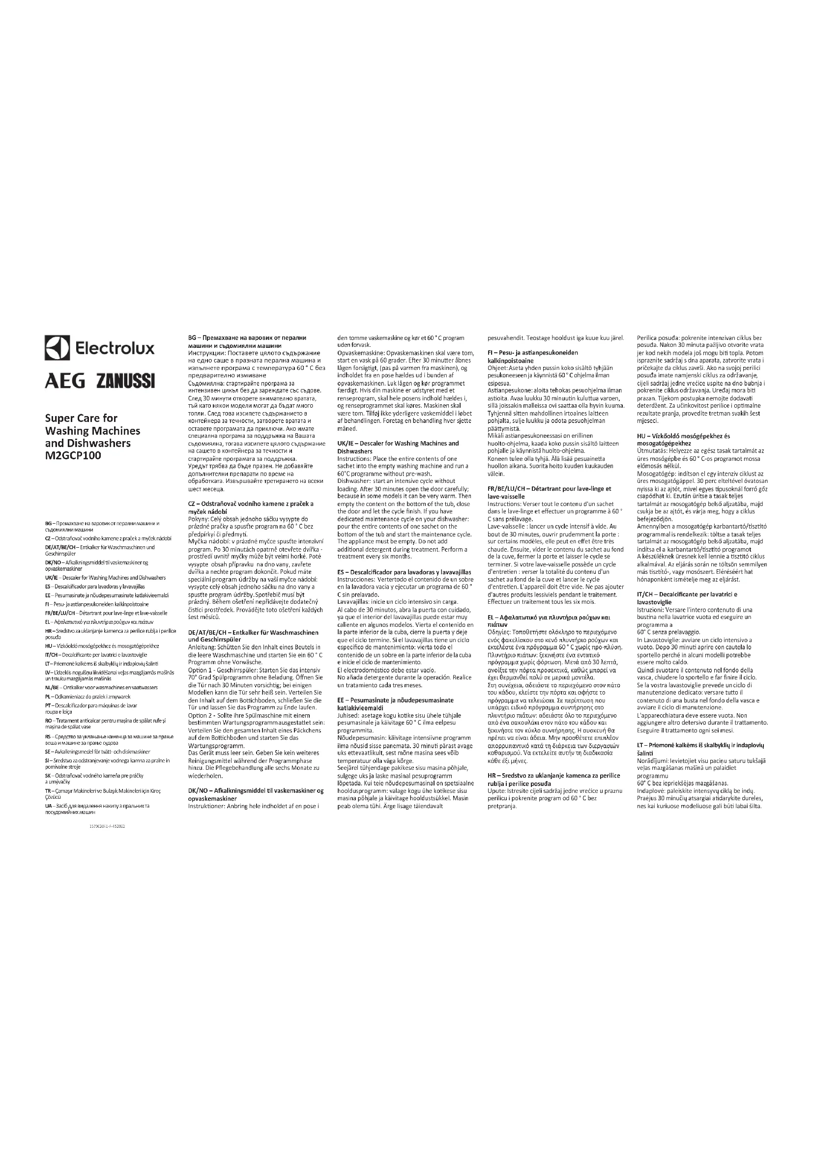 Retrouvez gratuitement la notice de l'appareil M2GCP100 ELECTROLUX au format PDF.