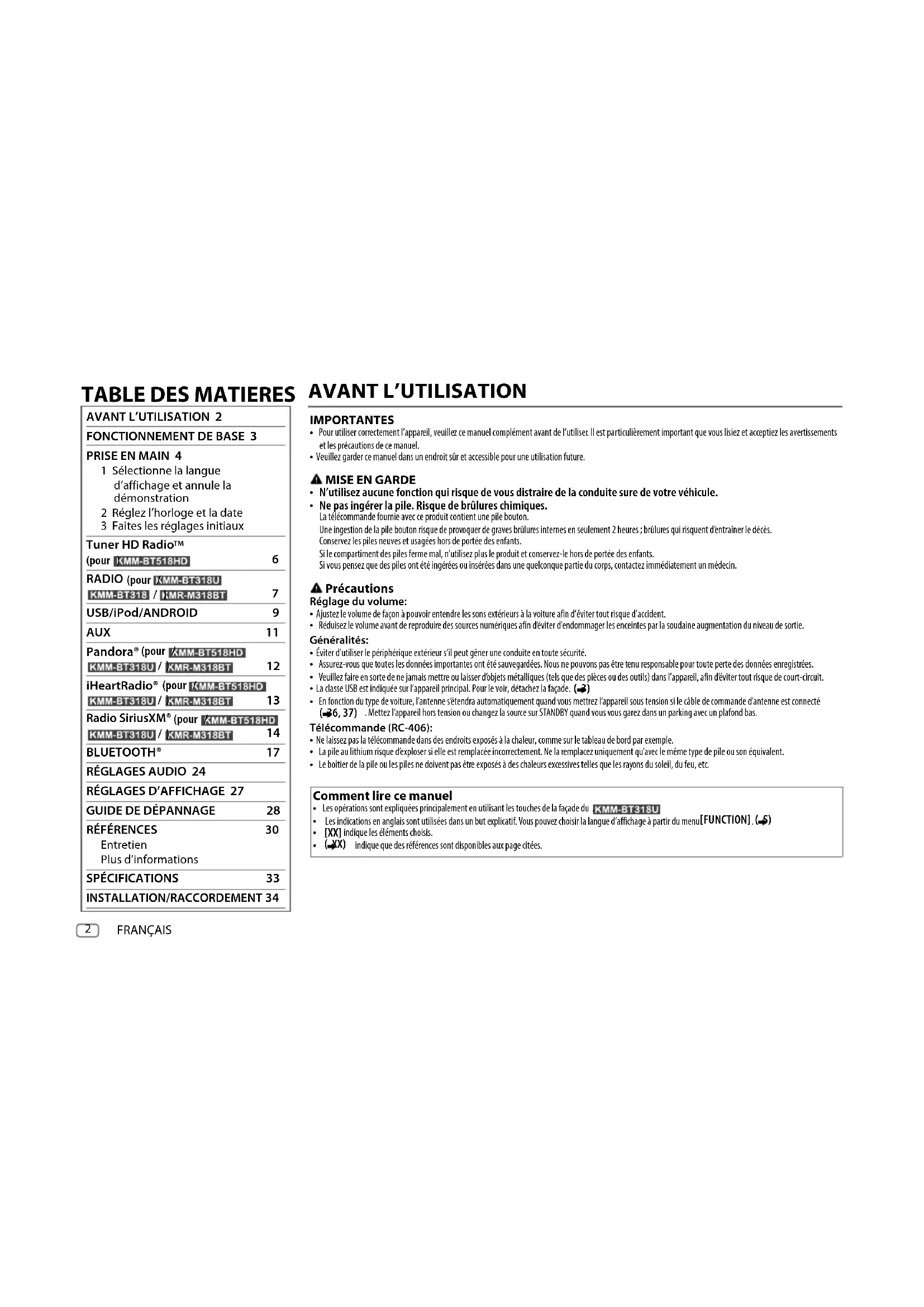 MODE D'EMPLOI KMMBT318U KENWOOD