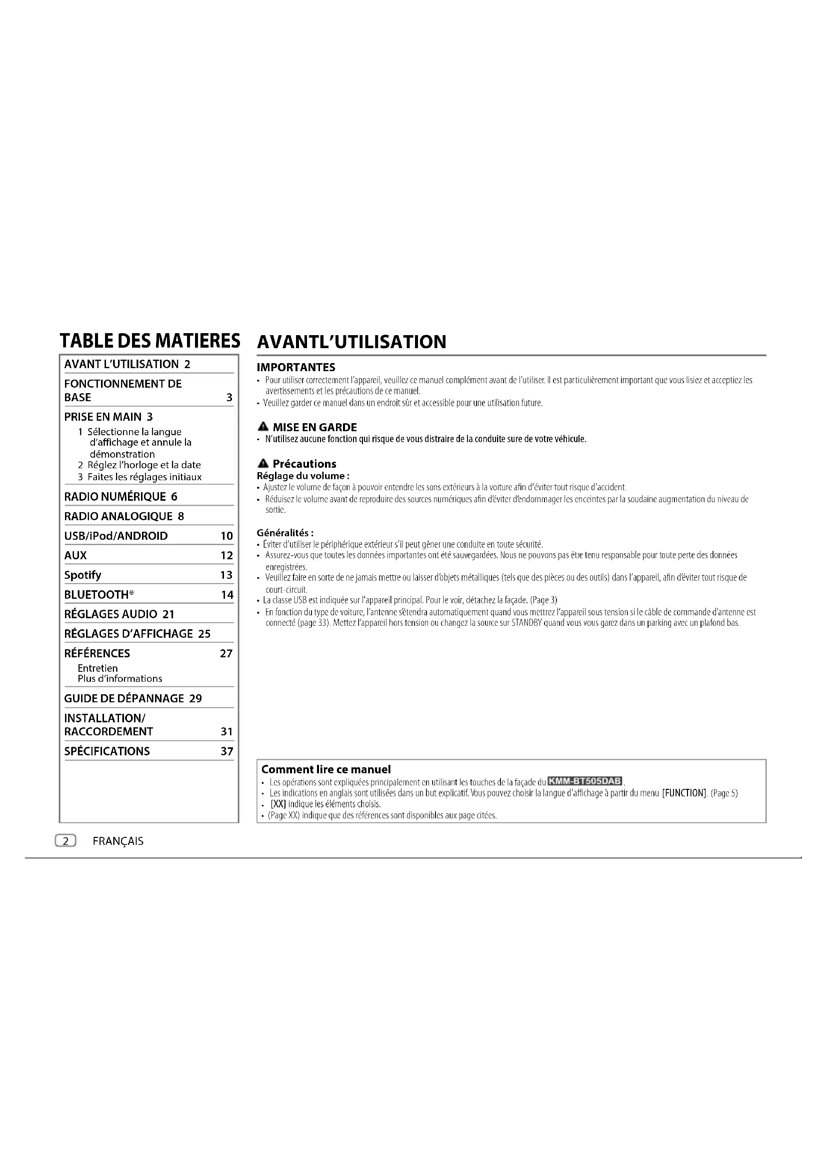 - (Page XX) indique que des références sont disponibles aux page citées. JS_KWD_KMM_BT505DAB_EN_FR.indd 2JS_KWD_KMM_BT505DAB_EN_FR.indd 2 26/9/2018 1:53:27 PM26/9/2018 1:53:27 PMFRANÇAIS