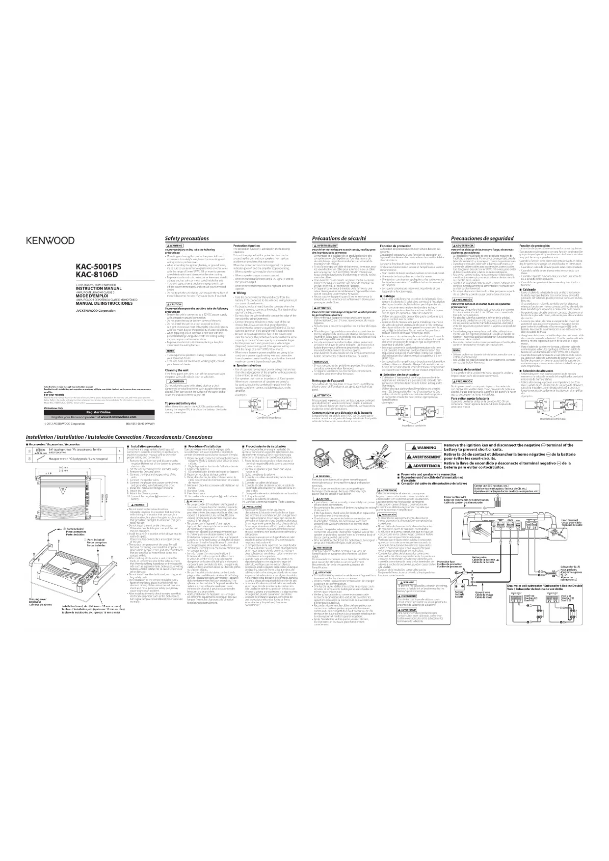 Retrouvez gratuitement la notice de l'appareil KAC5001PS KENWOOD au format PDF.