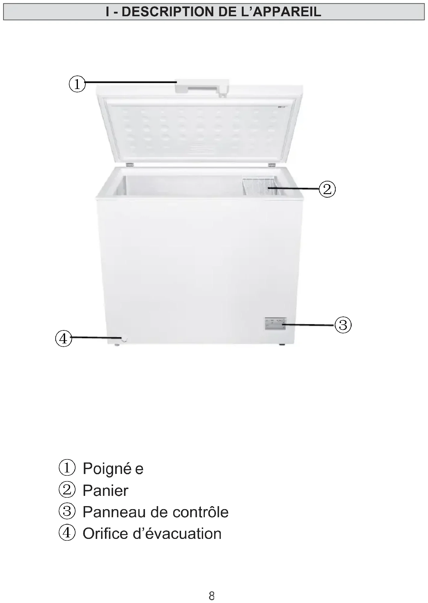 | Caractéristiques techniques | Type : Congélateur coffre |