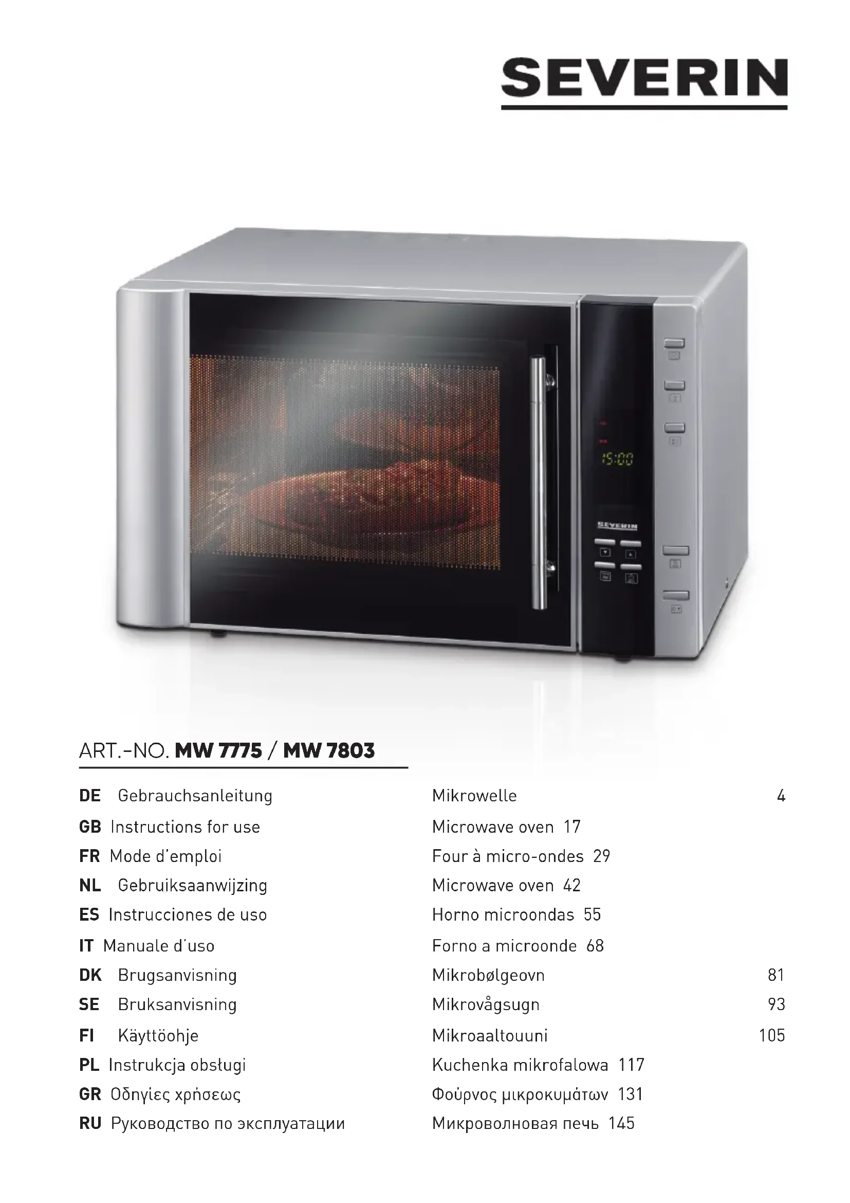 MW 7775 - Four à micro-ondes SEVERIN - Notice d'utilisation et mode d'emploi gratuit