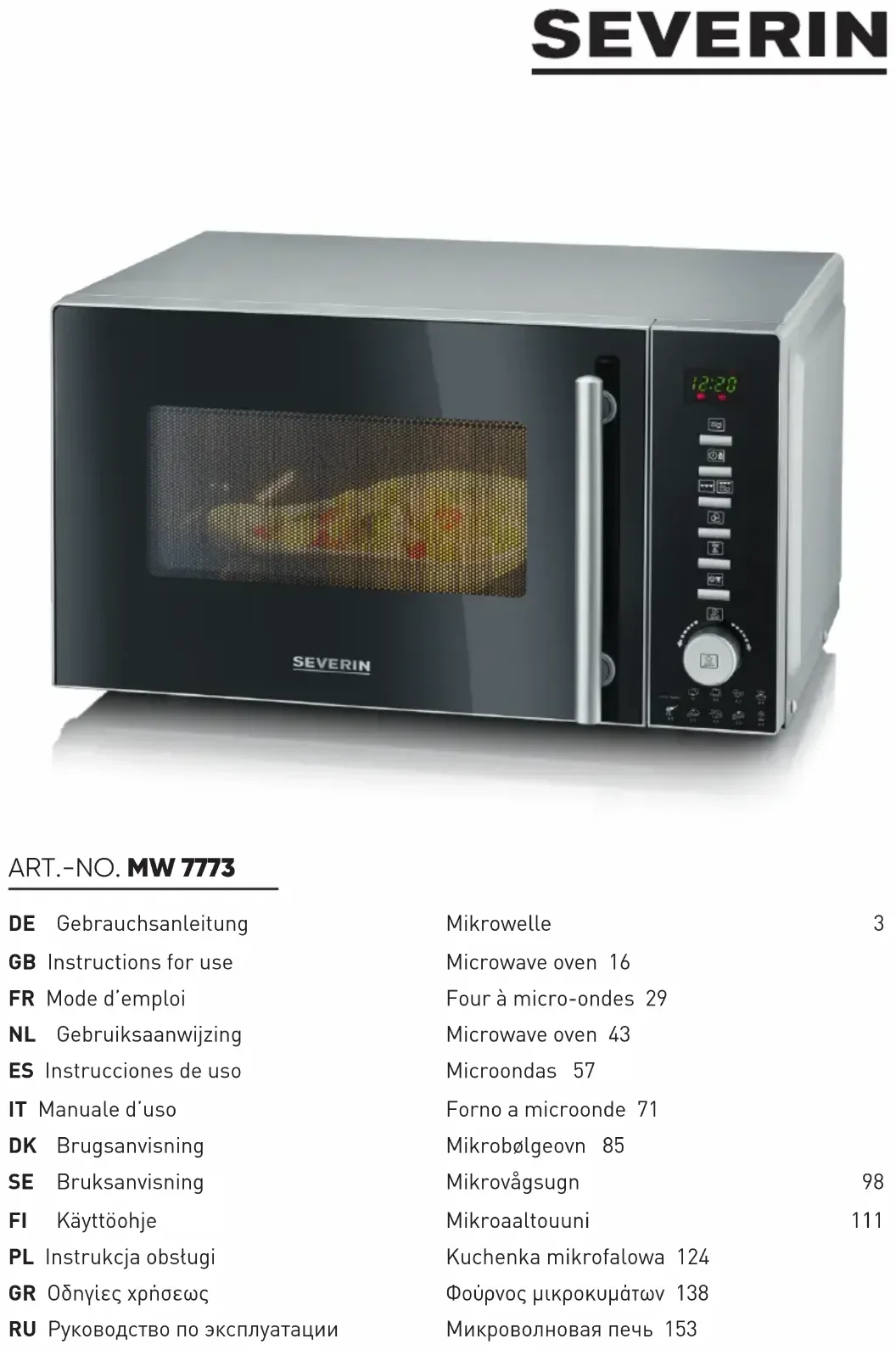 MW 7773 - Four à micro-ondes SEVERIN - Notice d'utilisation et mode d'emploi gratuit