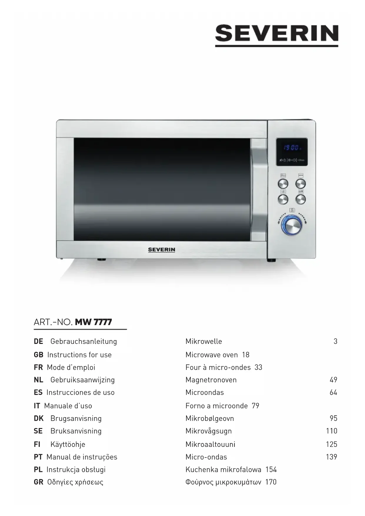 MW 7777 - Four à micro-ondes SEVERIN - Notice d'utilisation et mode d'emploi gratuit