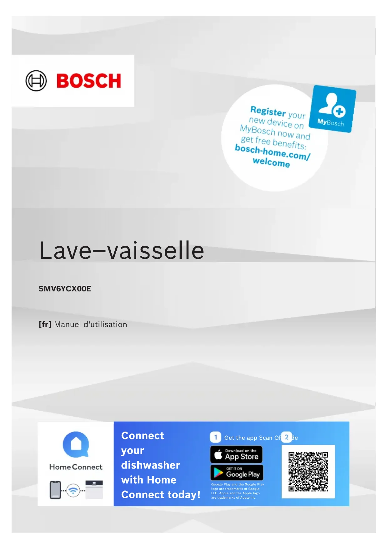 Retrouvez gratuitement la notice de l'appareil SMV6YCX00E BOSCH au format PDF.