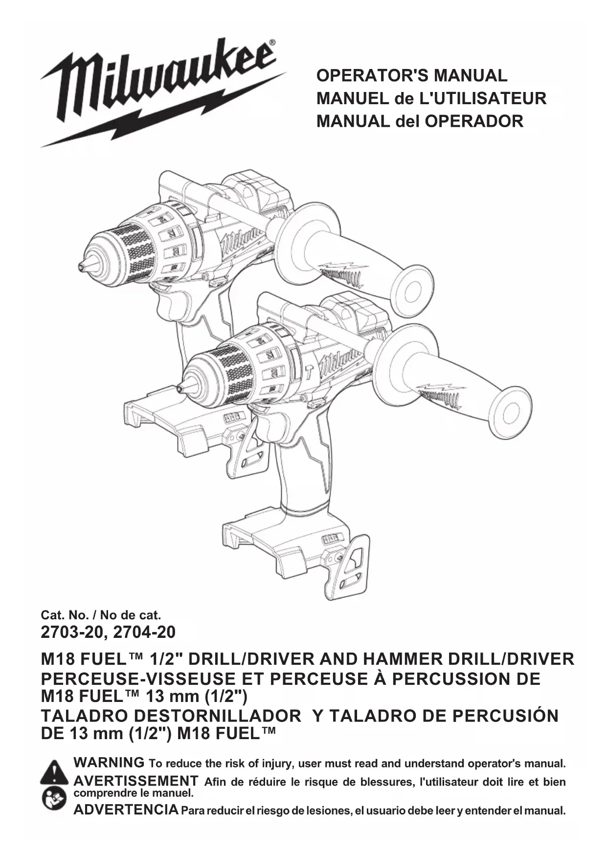 M18 Fuel 270420 - Perceuse MILWAUKEE - Notice d'utilisation et mode d'emploi gratuit