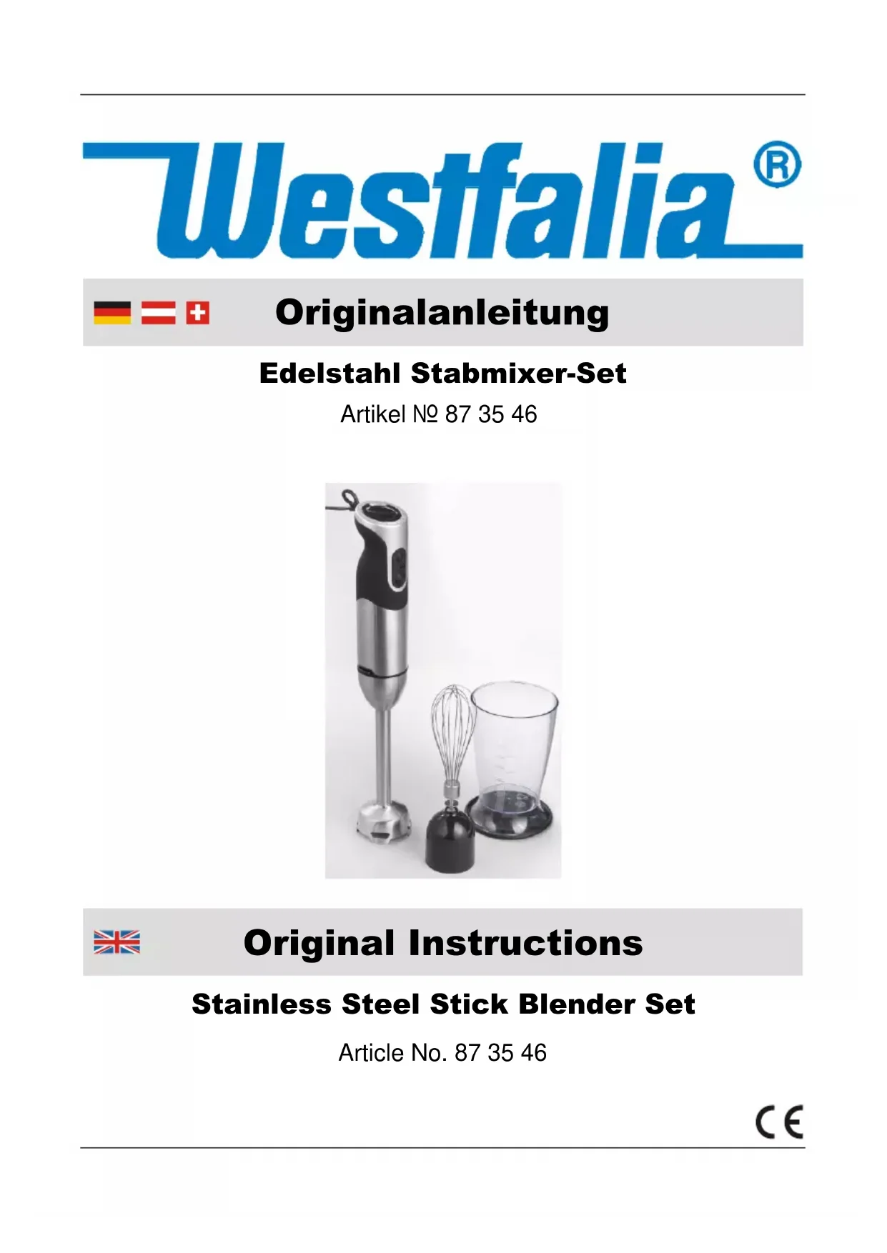 873546 - Blender Westfalia - Notice d'utilisation et mode d'emploi gratuit