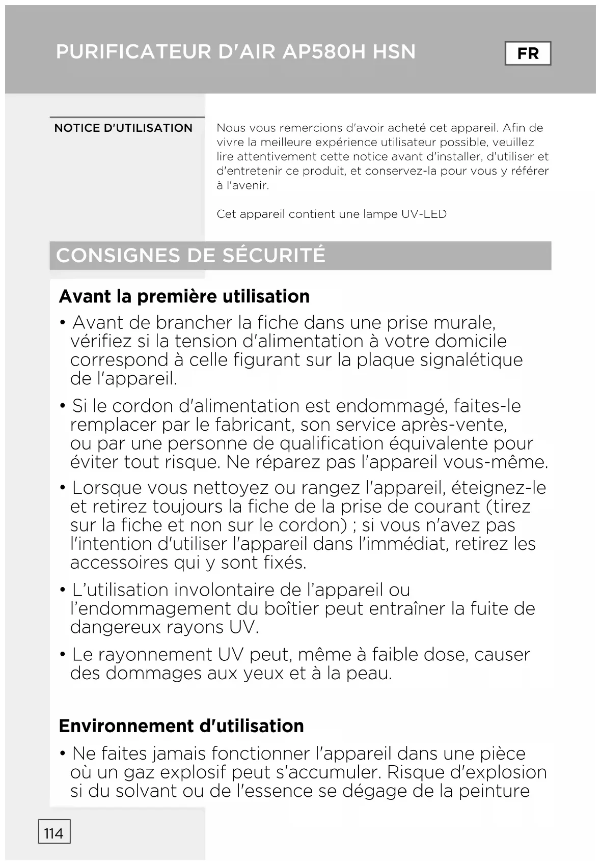 MODE D'EMPLOI AP580H HISENSE