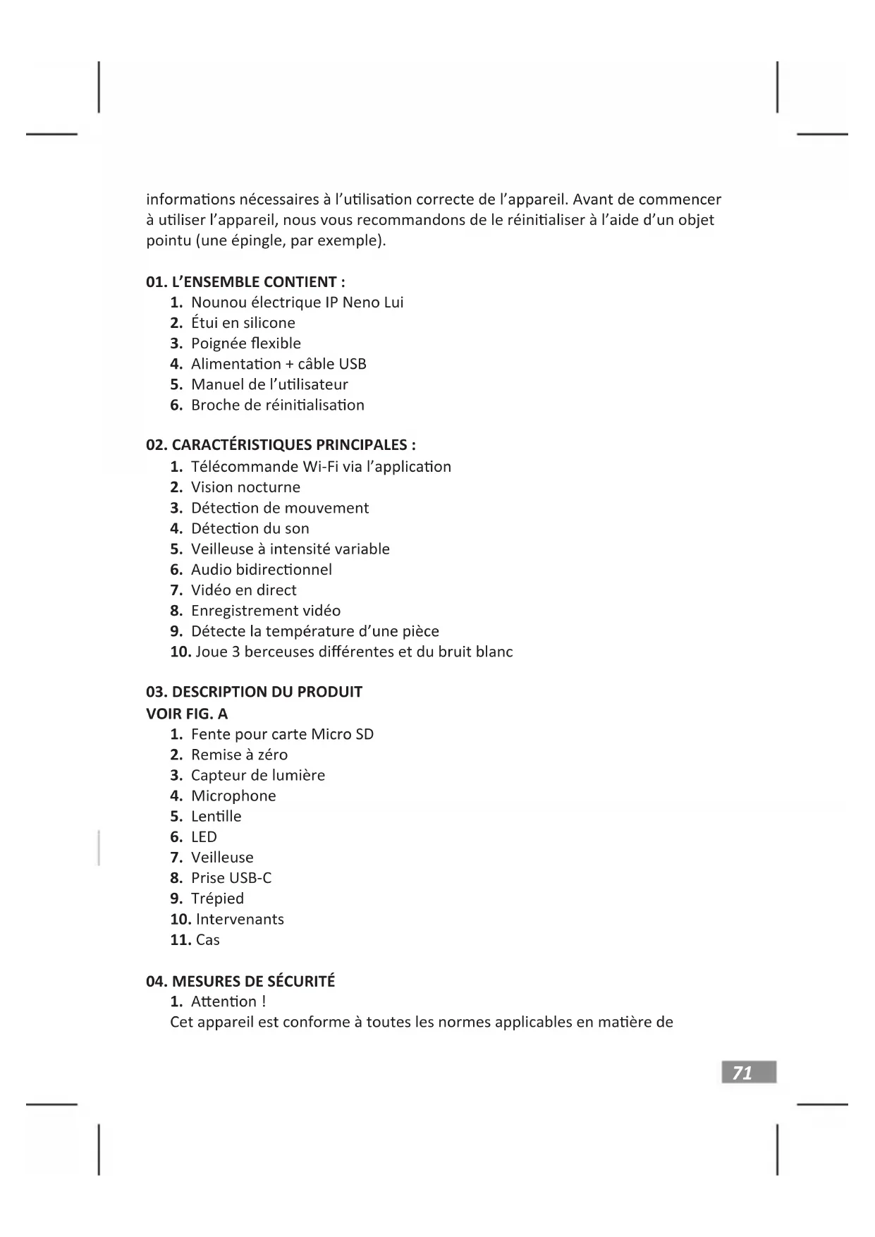 Cet appareil est conforme à toutes les normes applicables en maère de72 champs électromagnéques et peut être ulisé en toute sécurité à condion d’être ulisé comme décrit dans le manuel d’ulisaon. Les déclaraons de conformité complètes peuvent être téléchargées sur le site web de l’importa- teur: www.neno.pl.