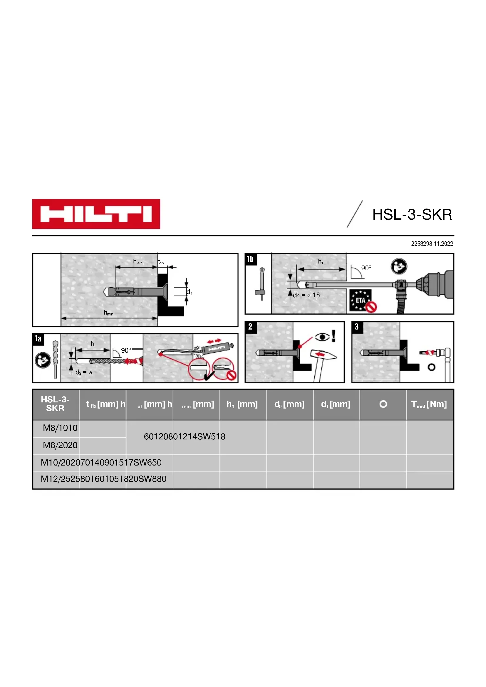 HSL3SKR - Cheville métallique HILTI - Notice d'utilisation et mode d'emploi gratuit