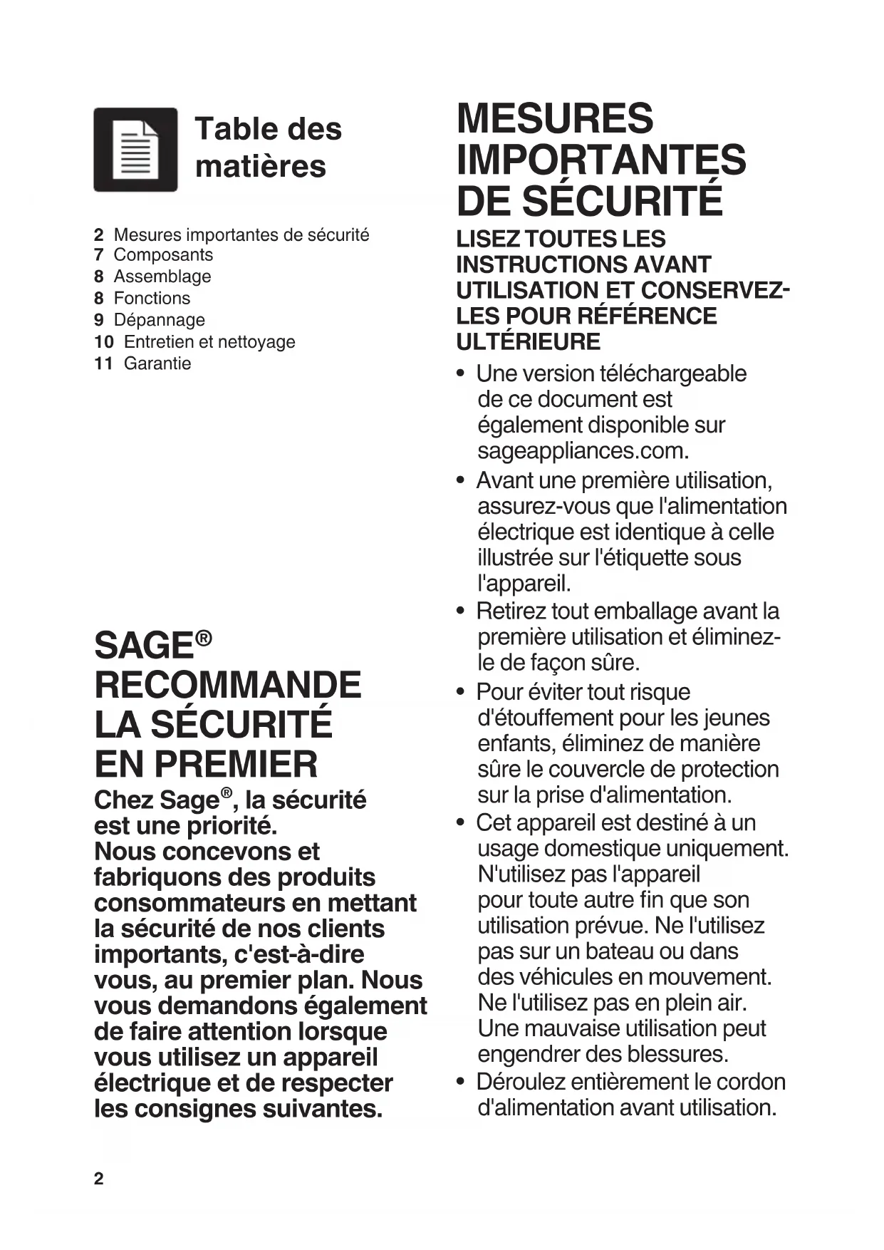 - Une version téléchargeable de ce document est également disponible sur sageappliances.com.