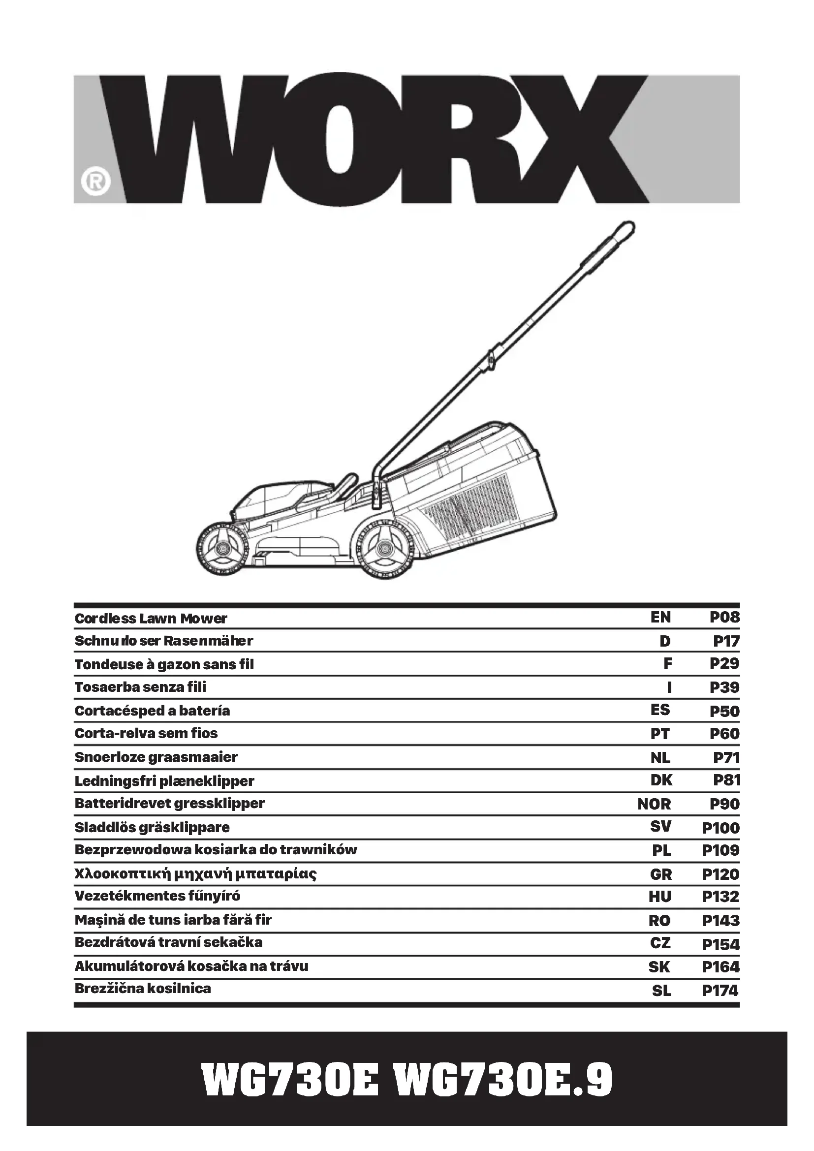 WG730E - Tondeuse à gazon WORX - Notice d'utilisation et mode d'emploi gratuit