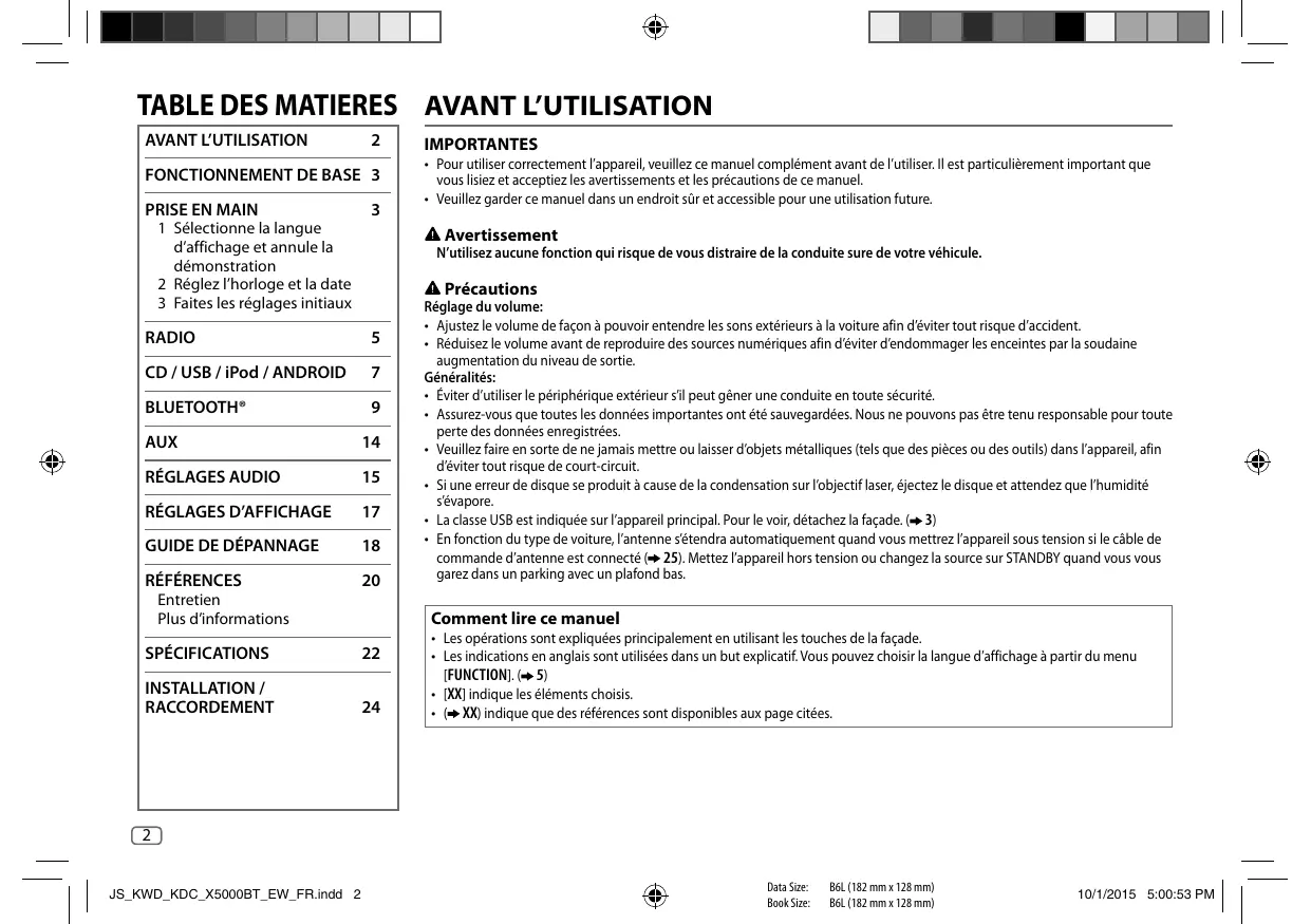 MODE D'EMPLOI KDC-X5000BT KENWOOD