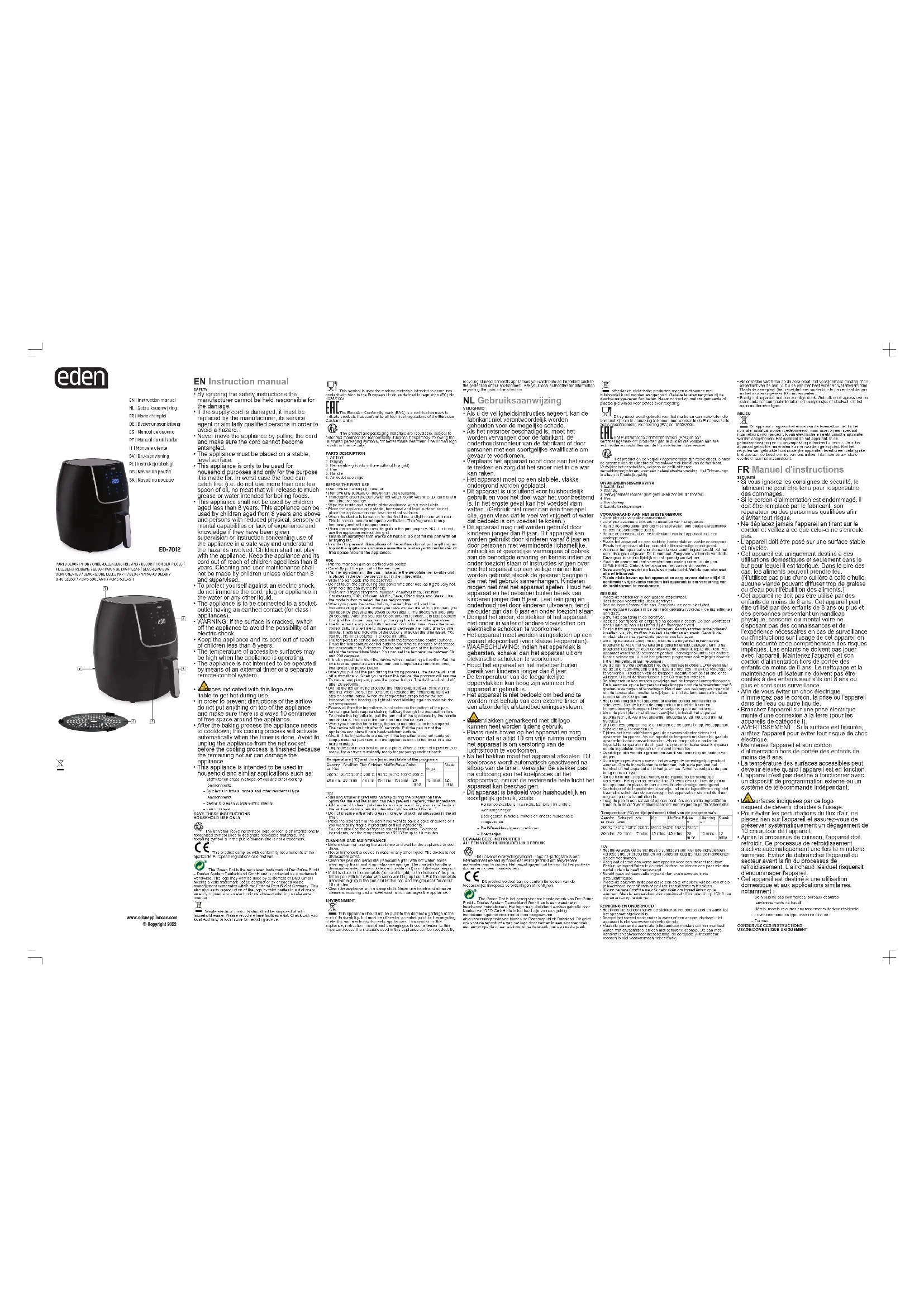 Retrouvez gratuitement la notice de l'appareil ED7012 EDEN au format PDF.