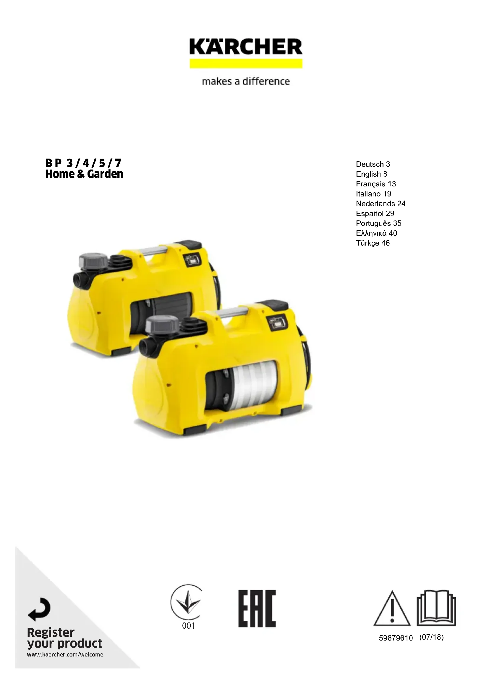BP 3 Home & Garden - Pompe Kärcher - Notice d'utilisation et mode d'emploi gratuit