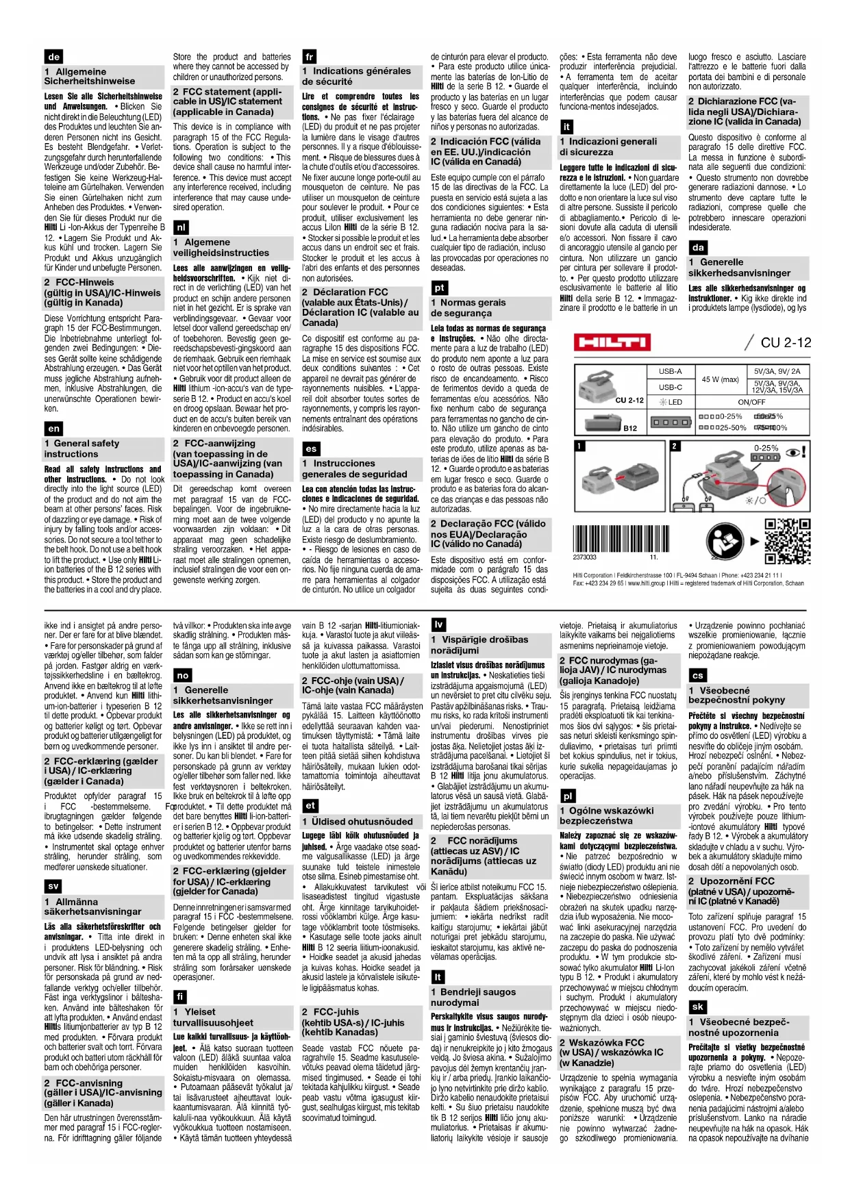 Retrouvez gratuitement la notice de l'appareil CU 212 HILTI au format PDF.