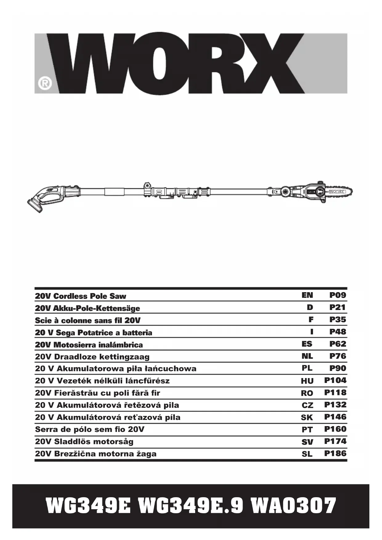 WG349E.9 - Scie WORX - Notice d'utilisation et mode d'emploi gratuit