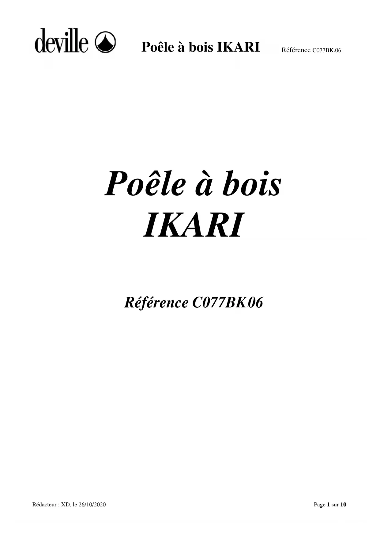 Poêle à bois IKARI Référence C077BK.06 Rédacteur : XD, le 26/10/2020 Page 1 sur 10