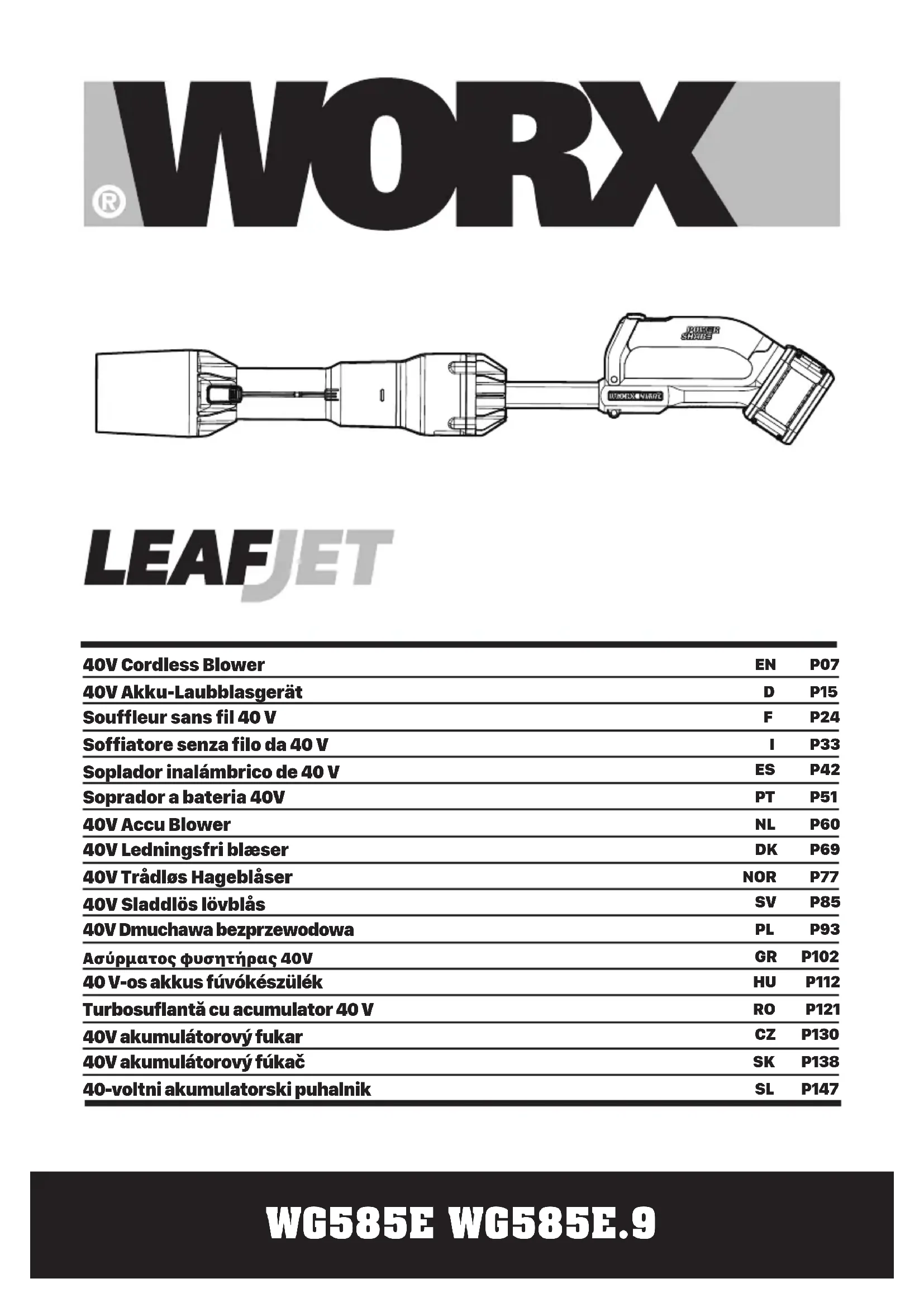 WG585E.9 - Souffleur WORX - Notice d'utilisation et mode d'emploi gratuit