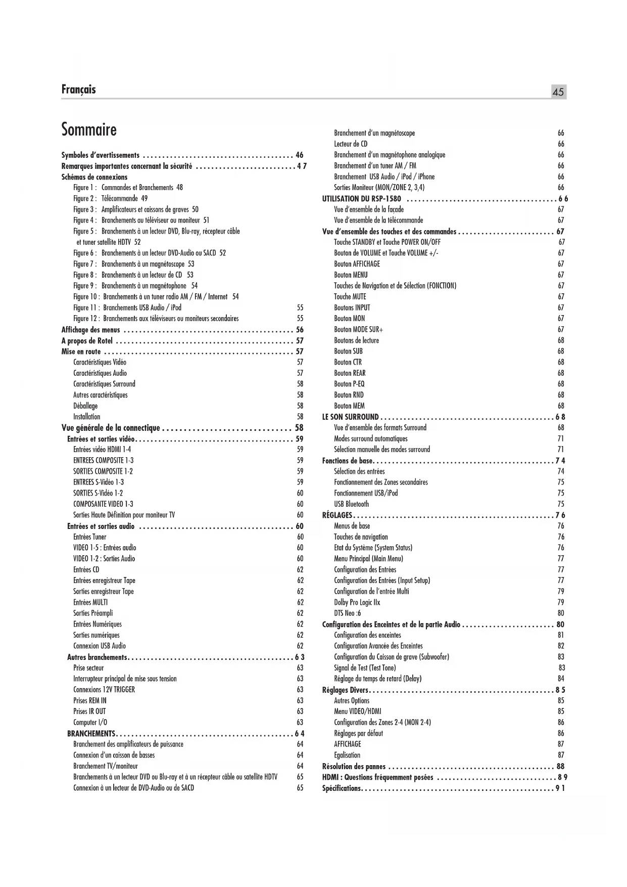 UTILISATION DU RSP-1580 .......................................66