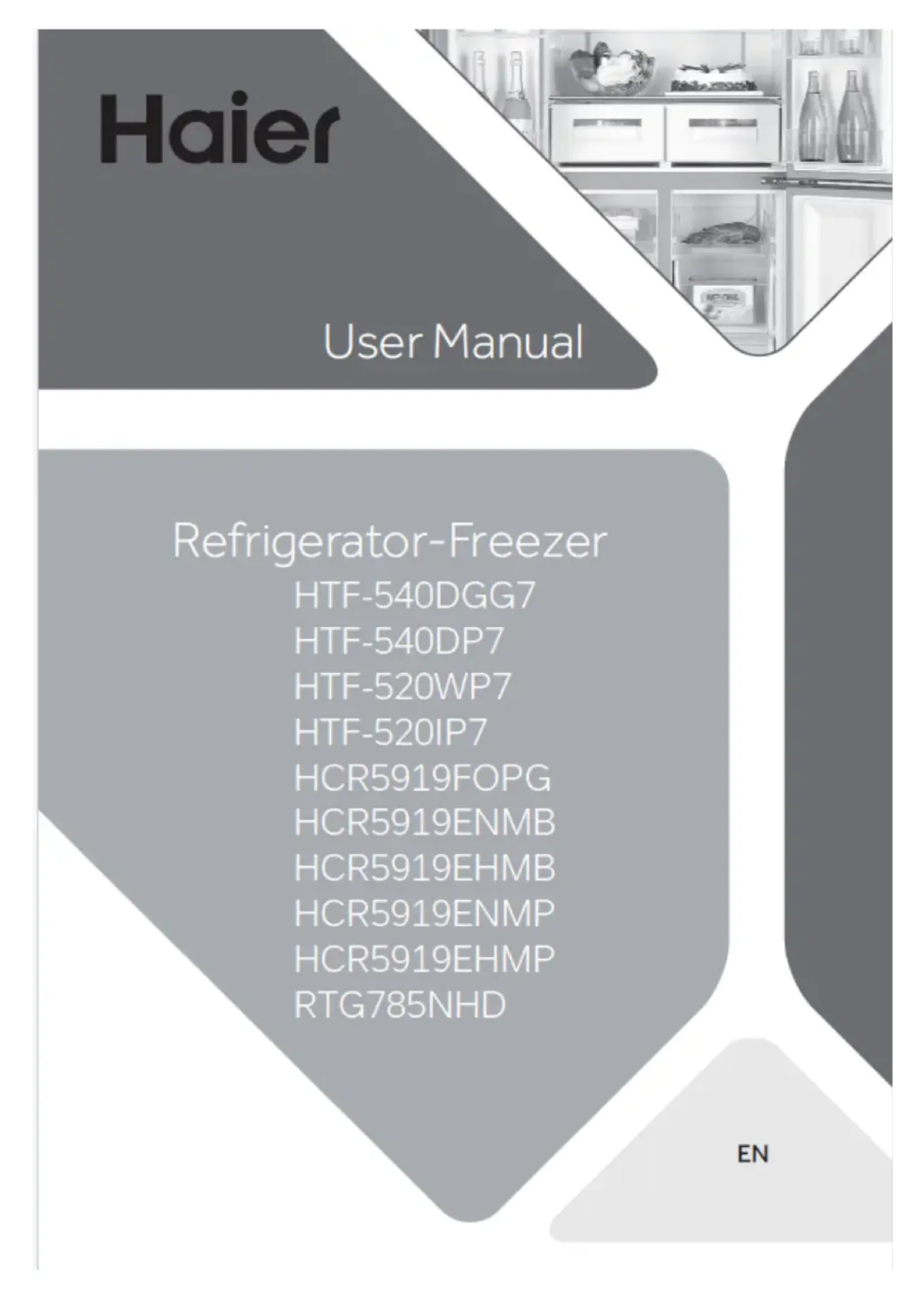 Manuel d’utilisation Réfrigérateur-congélateur HTF-540DGG7 HTF-540DP7 HTF-520WP7 HTF-520IP7 HCR5919FOPG HCR5919ENMB HCR5919EHMB HCR5919ENMP HCR5919EHMP RTG785NHD FRMerci