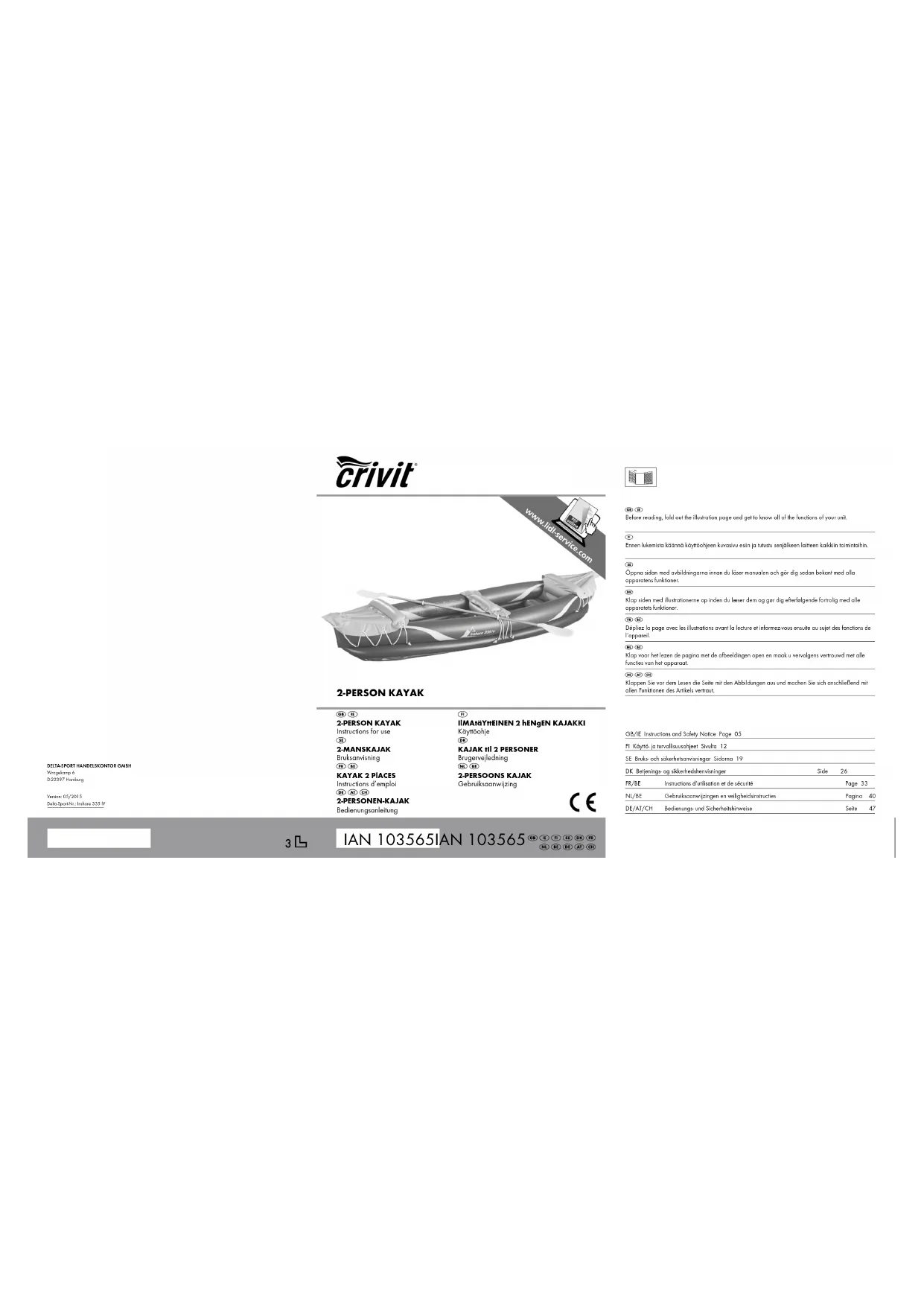 Inshore 335 lV - Kayak CRIVIT - Notice d'utilisation et mode d'emploi gratuit