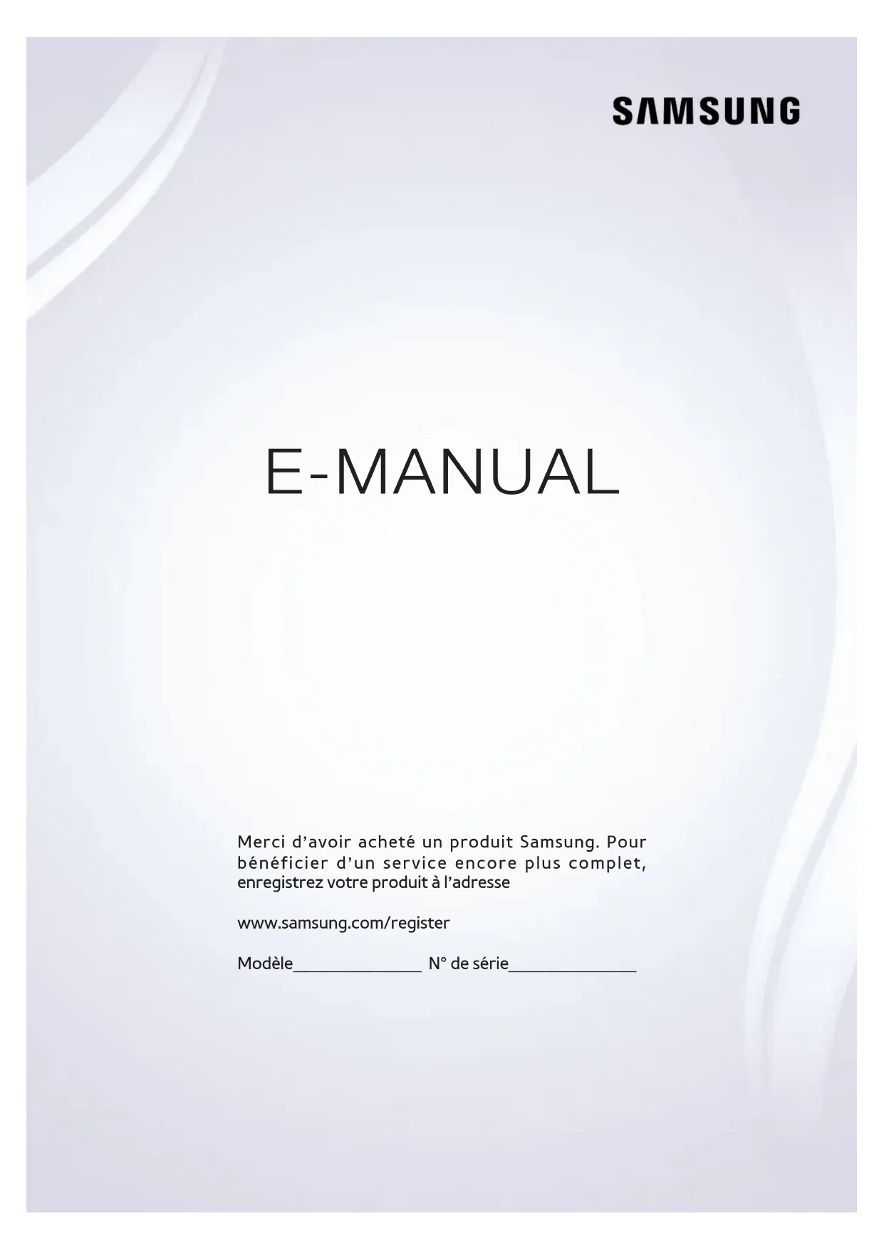 E-MANUAL Merci d’avoir acheté un produit Samsung. Pour bénéficier d’un service encore plus complet, enregistrez votre produit à l’adresse www.samsung.com/register Modèle
