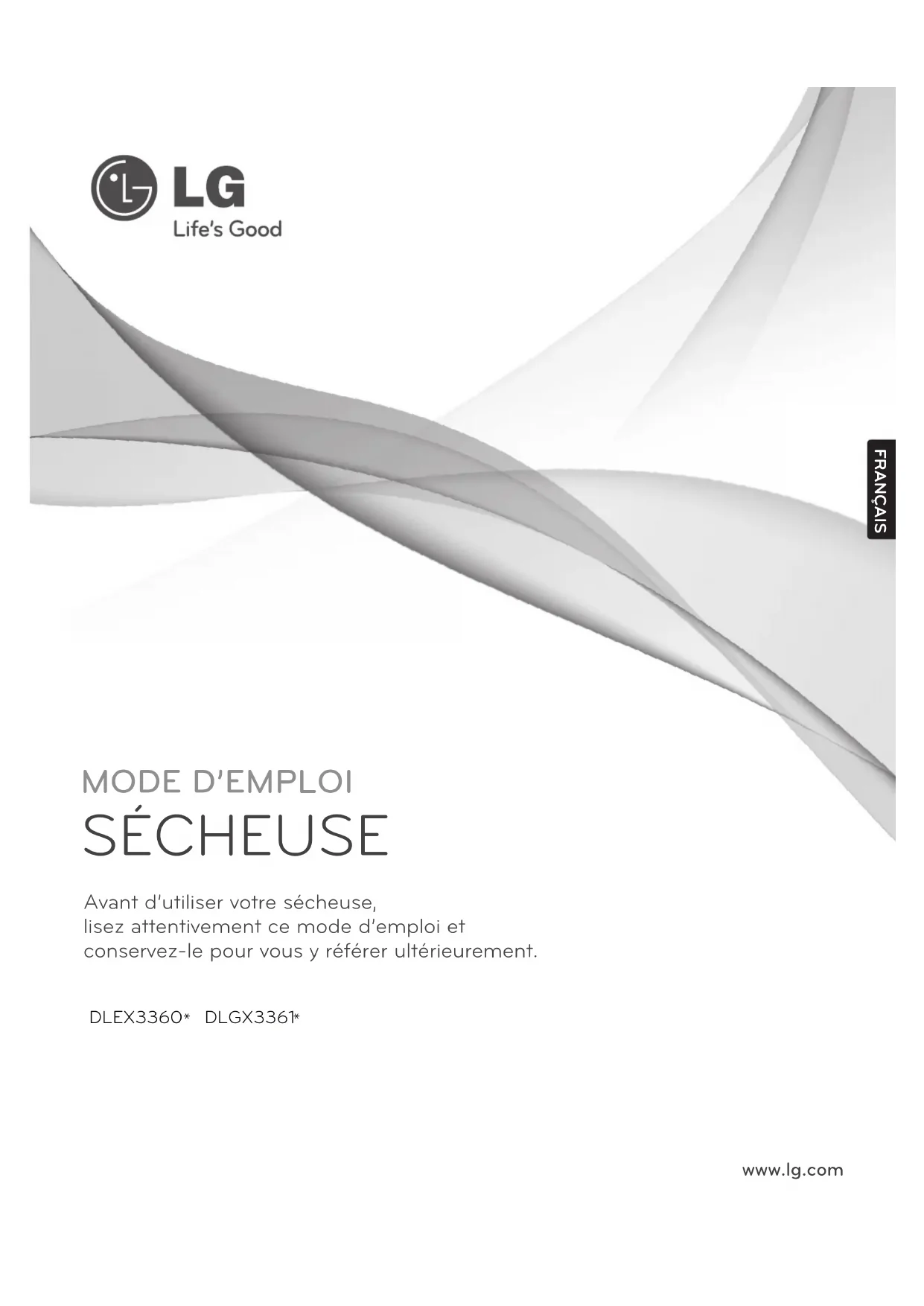 SÉCHEUSE Avant d’utiliser votre sécheuse, lisez attentivement ce mode d’emploi et conservez-le pour vous y référer ultérieurement. www.lg.com FRANÇAIS DLEX3360