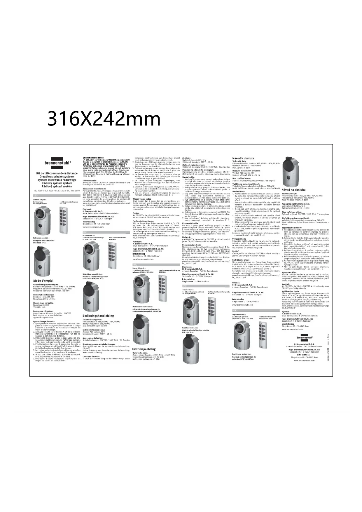 Retrouvez gratuitement la notice de l'appareil PrimeraLine RCR 3600 BRENNENSTUHL au format PDF.