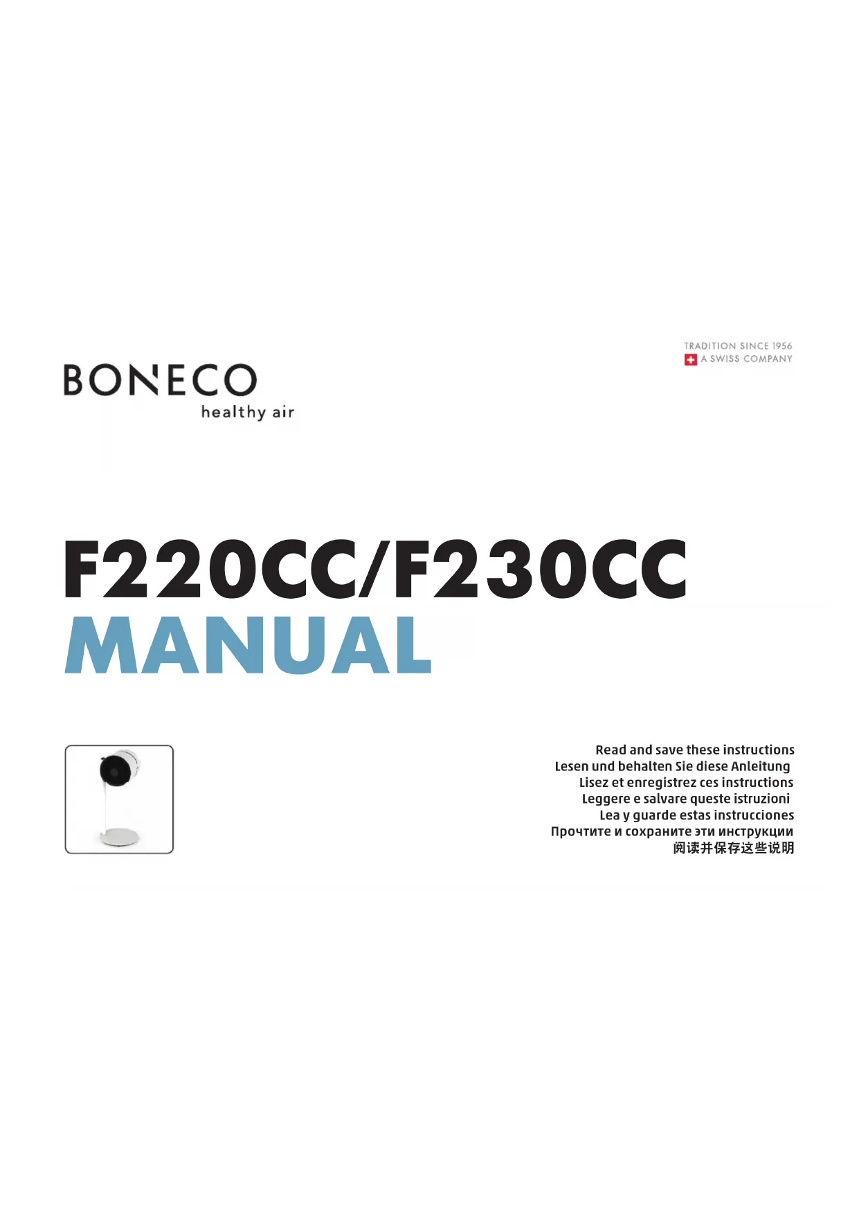 Retrouvez gratuitement la notice de l'appareil F230CC BONECO au format PDF.