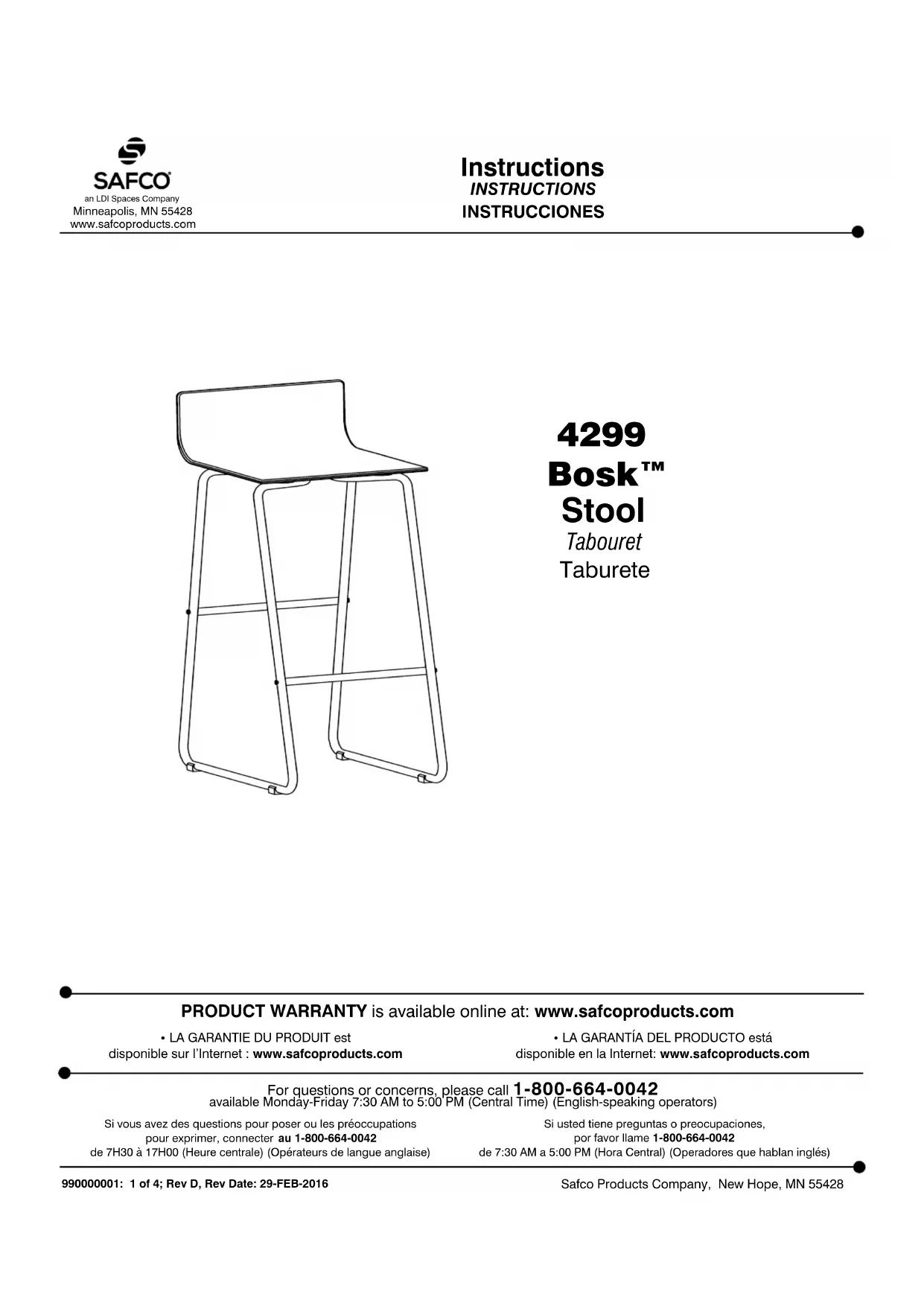 Bosk 4299 - Chaise de bureau Safco - Notice d'utilisation et mode d'emploi gratuit