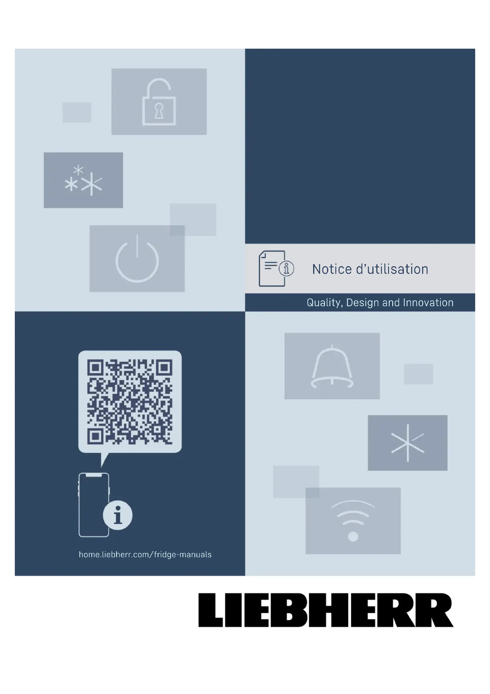l'environnement................................................... 37 Vous avez fait l’acquisition d’un nouvel appareil et nous vous en félicitons. Avec l’achat d’un tel appareil vous disposerez de tous les avantages d’une technique du froid des plus modernes et assurant une qualité au plus haut niveau, une grande longévité et une sécurité parfaite de fonctionnement. Les équipements de votre appareil facilitent une utili‐ sation quotidienne très confortable. Avec l’acquisition de cet appareil, fabriqué dans le respect de l’environnement et utilisant des matériaux de recyclage, vous participez activement avec nous à la protection de l’environnement. Nous espérons que votre nouvel appareil vous donnera entière satisfaction. Le fabricant travaille sans cesse au perfectionnement de tous les modèles de ses produits. Nous comptons donc sur votre compréhension concernant des modifi‐ cations éventuelles de forme, d’équipement et de tech‐ nologie. Symbole Explication Lire le manuel d’utilisation Pour découvrir tous les avantages de votre nouvel appareil, veuillez lire attentivement les consignes figurant dans le présent manuel. Informations supplémentaires sur Internet Vous pouvez trouver les instructions au format numérique avec des informations complémentaires sur Internet en scannant le QR-code sur la page de couverture de cette notice ou en saisissant votre numéro de service à l’adresse home.liebherr.com/ fridge-manuals. Vérifier l'état de l’appareil Vérifier l’absence d’avaries de transport sur toutes les pièces. En cas de réclamation, adressez-vous au revendeur ou au service client. Divergences Le manuel d’utilisation est valable pour plusieurs modèles. Des divergences sont donc possibles. Les paragraphes concer‐ nant uniquement un certain type d'appa‐ reils sont indiqués par un astérisque (*). Symbole Explication Instructions et résultats Les instructions sont indiquées par . Les résultats sont indiqués par