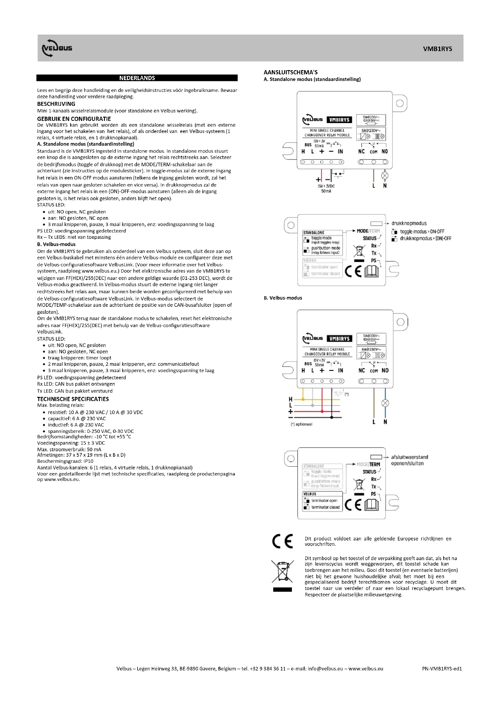 Retrouvez gratuitement la notice de l'appareil VMB1RYS Velbus au format PDF.