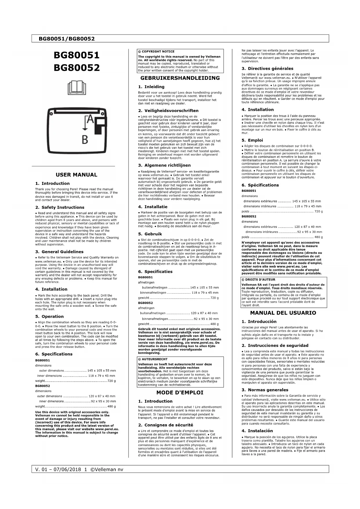 BG80052 - Coffre-fort Perel - Notice d'utilisation et mode d'emploi gratuit