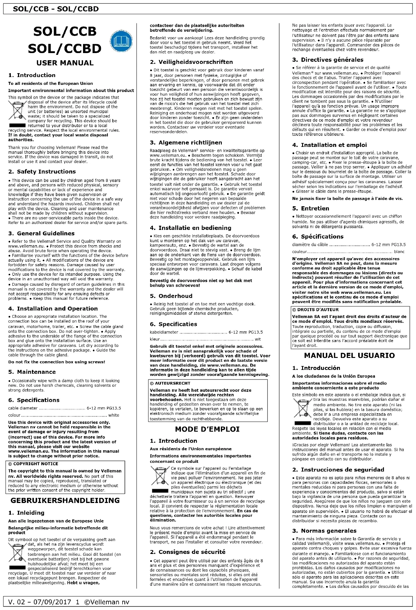 Retrouvez gratuitement la notice de l'appareil SOLCCBD VELLEMAN au format PDF.
