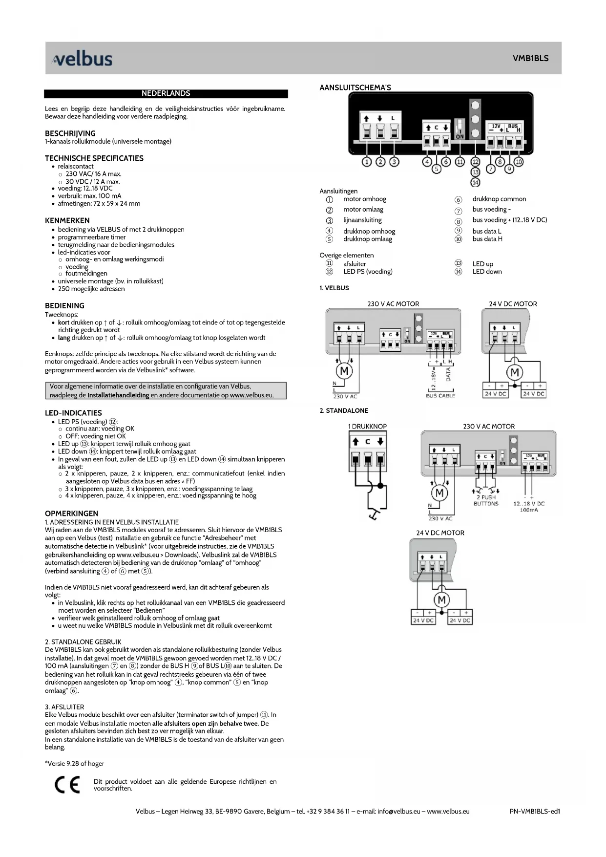 Retrouvez gratuitement la notice de l'appareil VMB1BLS Velbus au format PDF.