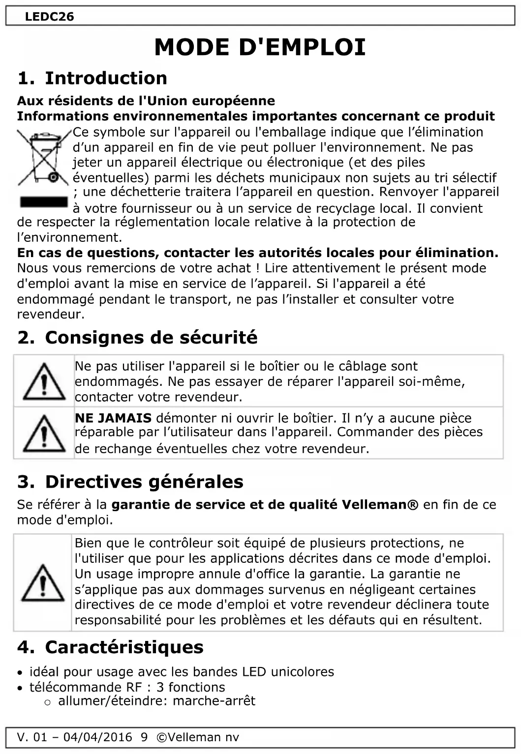 V. 01 – 04/04/2016 10 ©Velleman nv