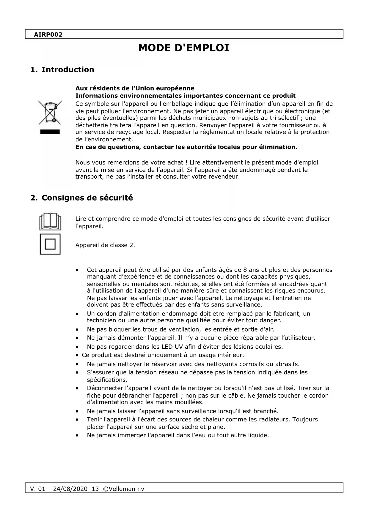 V. 01 – 24/08/2020 14 ©Velleman nv