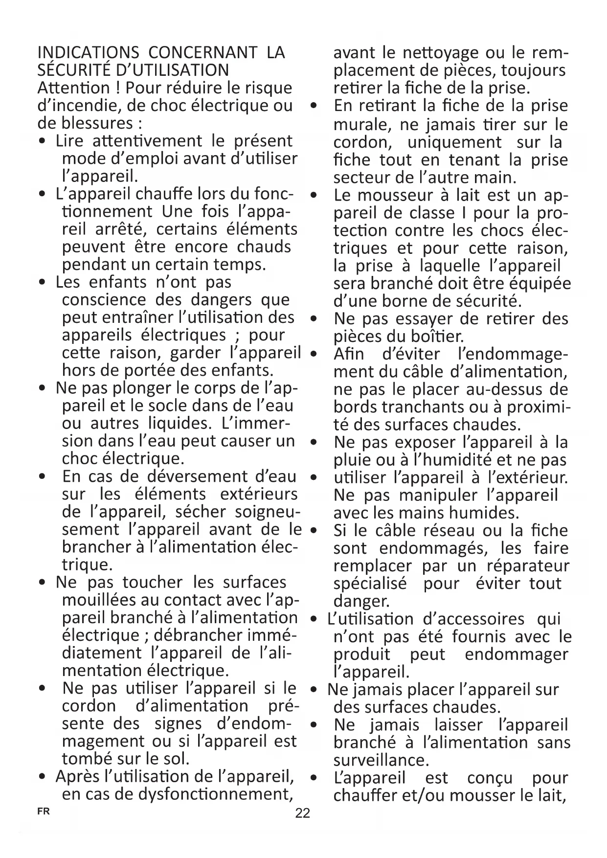 - L’appareil est conçu pour chauer et/ou mousser le lait, FR23 ne pas l’uliser à d’autres ns.