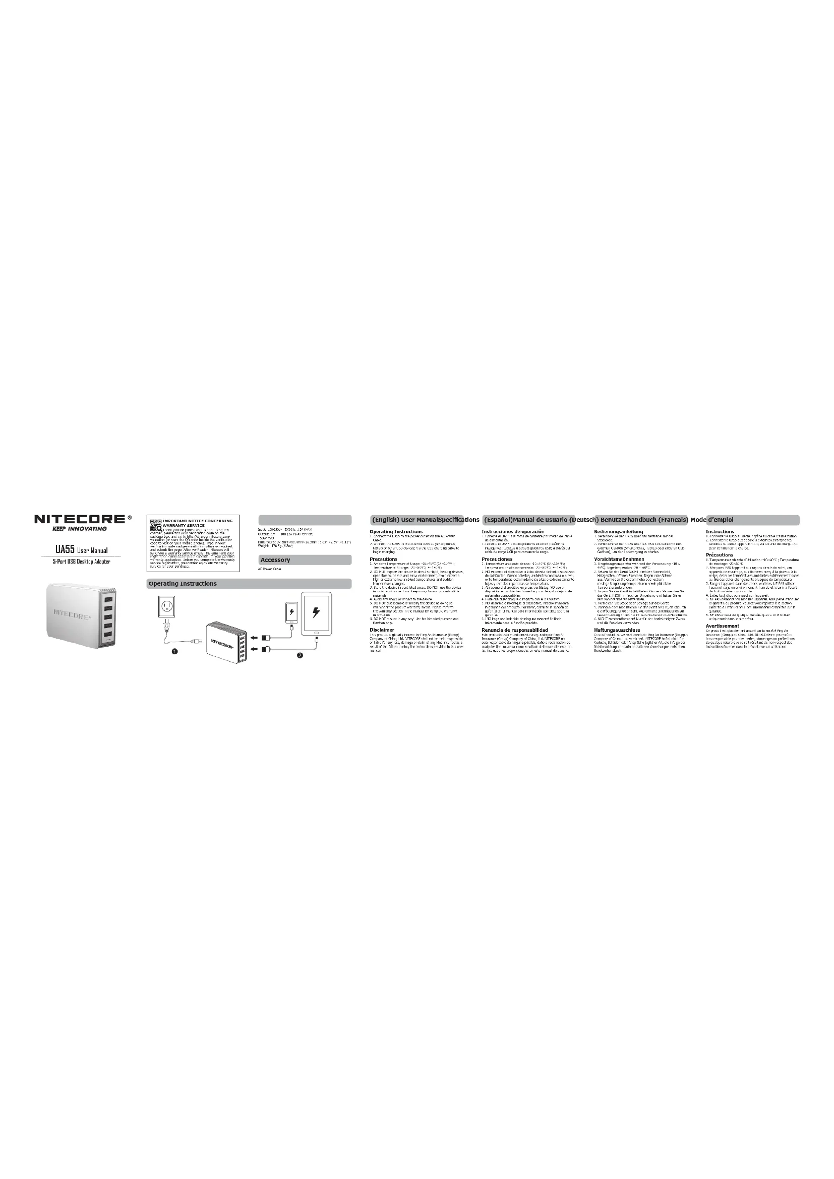 Retrouvez gratuitement la notice de l'appareil UA55 Nitecore au format PDF.