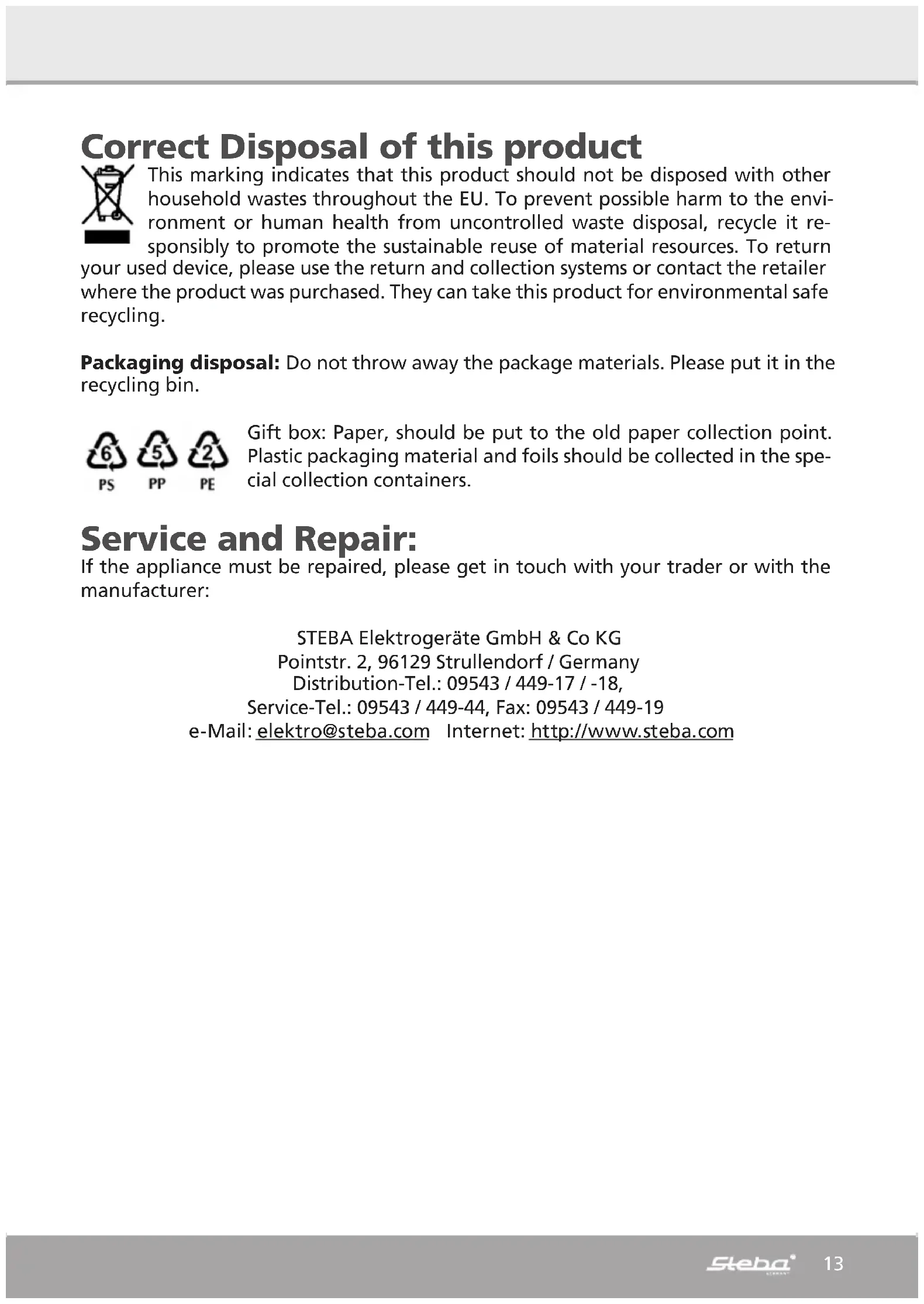 Retrouvez gratuitement la notice de l'appareil VT 360 Twist STEBA au format PDF.
