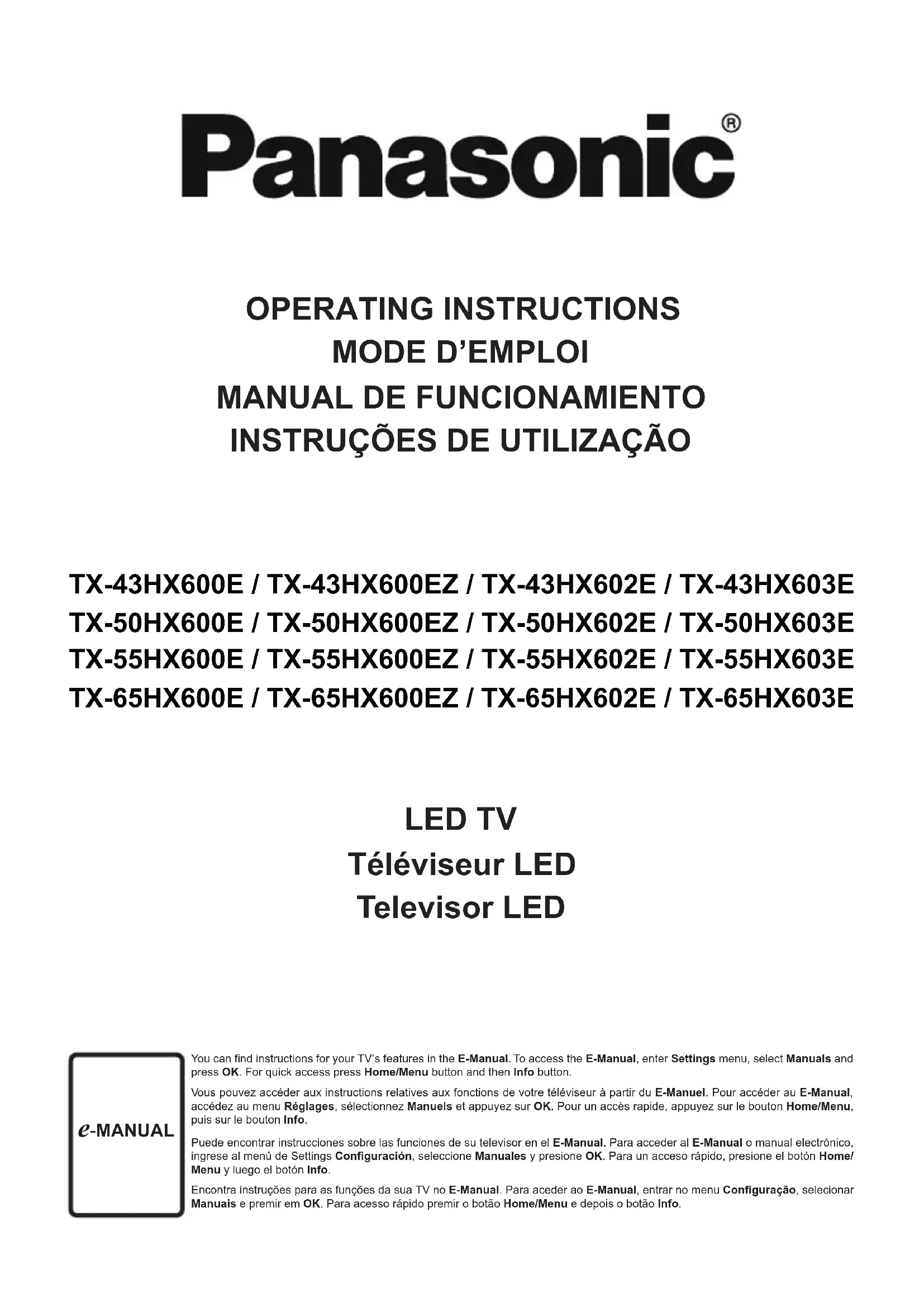 Retrouvez gratuitement la notice de l'appareil TX65HX600EZ PANASONIC au format PDF.