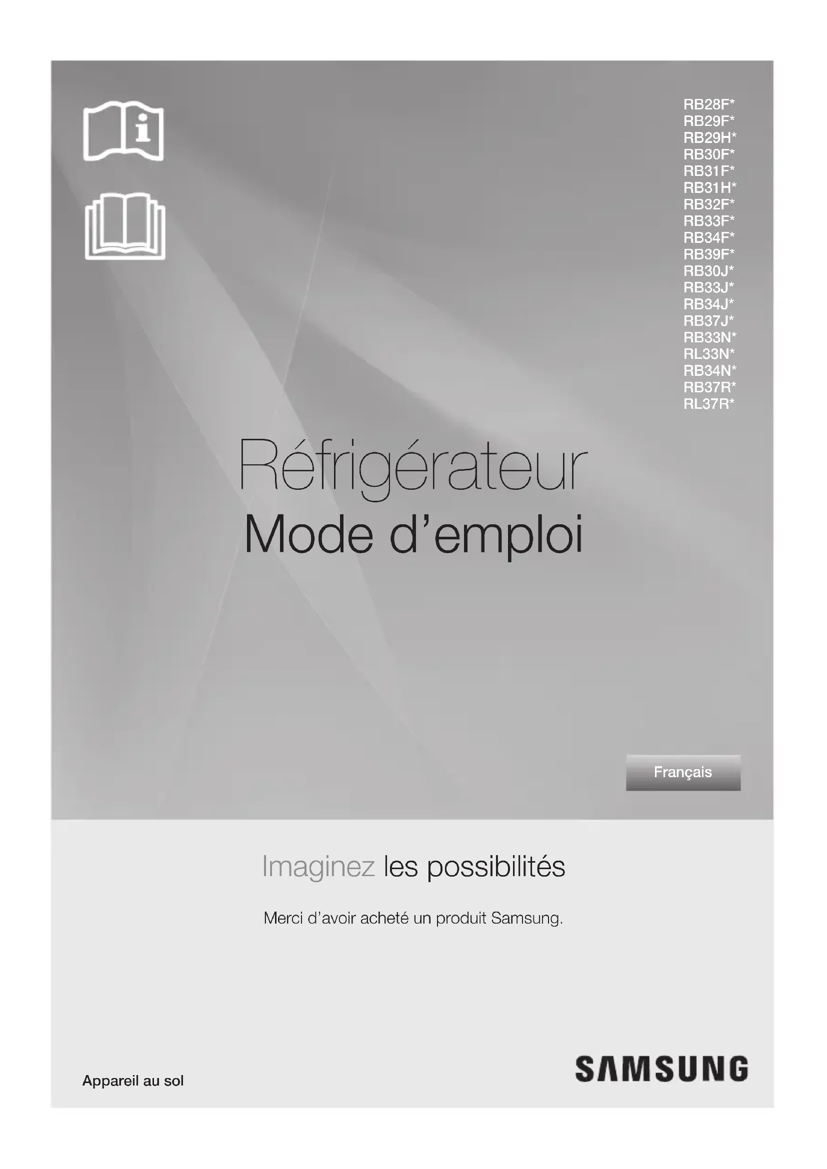 Réfrigérateur Mode d’emploi Imaginez les possibilités Merci d’avoir acheté un produit Samsung. RB28F* RB29F* RB29H* RB30F* RB31F* RB31H* RB32F* RB33F* RB34F* RB39F* RB30J* RB33J* RB34J* RB37J* RB33N* RL33N* RB34N* RB37R* RL37R* Français Appareil au solconsignes de sécurité