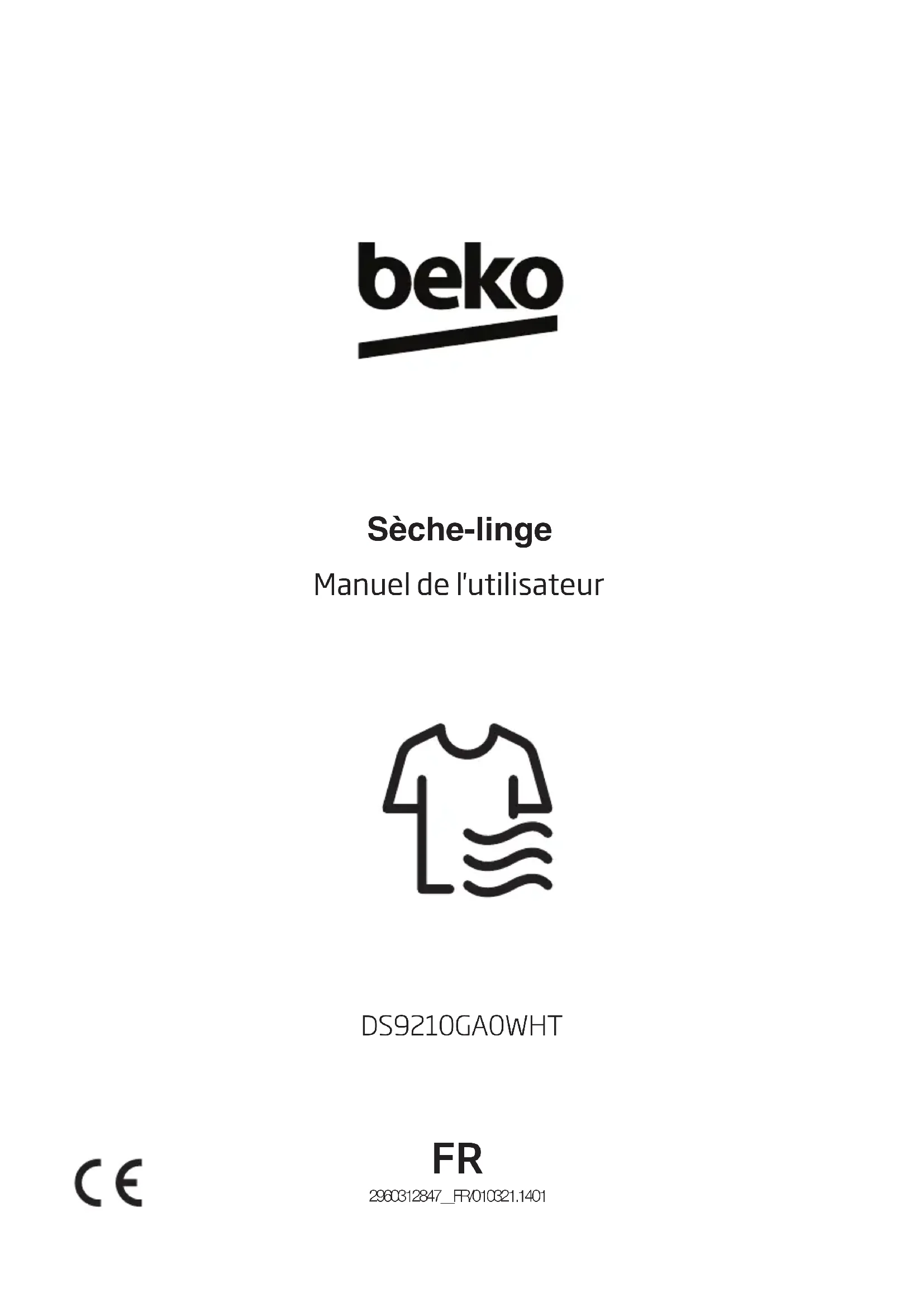 2960312847__FR/010321.14012 Sèche-linge / Manuel de l’utilisateur Ce produit a été fabriqué à l’aide de la technologie de pointe et dans des conditions respectueuses de l’environnement Veuillez d’abord lire ce manuel ! Chère cliente, cher client, Nous vous remercions d’avoir choisi un appareil Beko. Nous espérons que votre appareil qui a été fabriqué avec des matériaux de haute qualité et une technologie de pointe vous offrira les meilleurs résultats. Nous vous conseillons de lire attentivement ce manuel et tout autre document fourni avant d’utiliser votre appareil et de le conserver à titre de référence. Si vous cédez l’appareil à quelqu’un d’autre, donnez-lui aussi le manuel. Prêtez attention à tous les détails et aux mises en garde indiquées dans le manuel d’utilisation et suivez les instructions qui y sont inscrites. Utilisez ce manuel d’utilisateur pour le modèle indiqué sur la page de couverture.