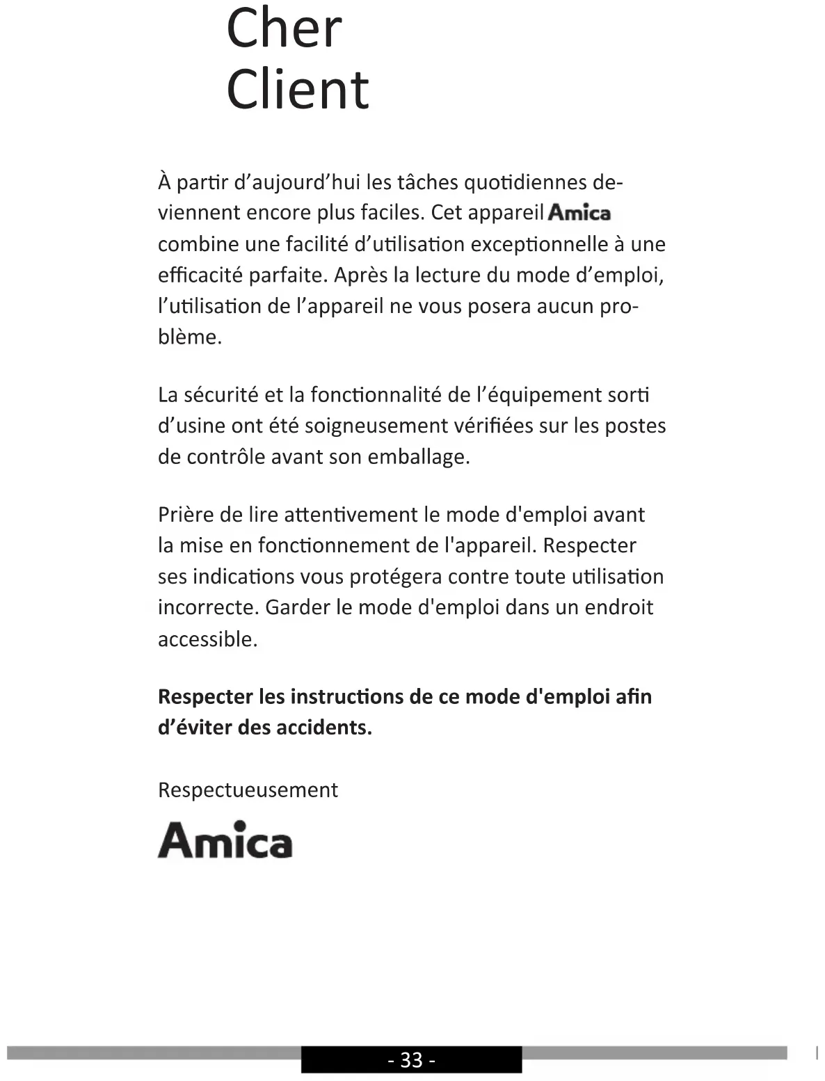 MODE D'EMPLOI WK 341 901 S AMICA