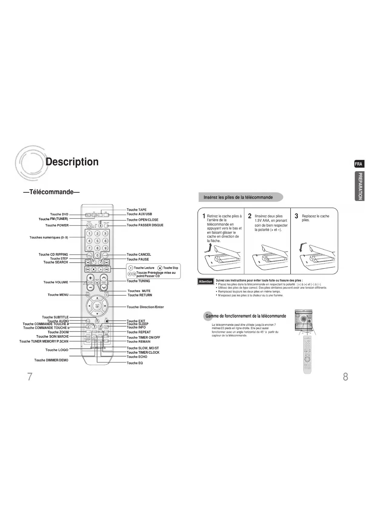 mode d’emploi MAX-DA54 MAX-DA55 imaginez les possibilités Nous vous remercions d'avoir acheté un produit Samsung.Pour obtenir un service plus complet, veuillezenregistrer votre produit en cliquant sur l’adressesuivante www.samsung.com/global/registerMAX-DA55-1-FRE-0418 5/19/08 12:06 AM Page 212 Avertissement Precautions STA