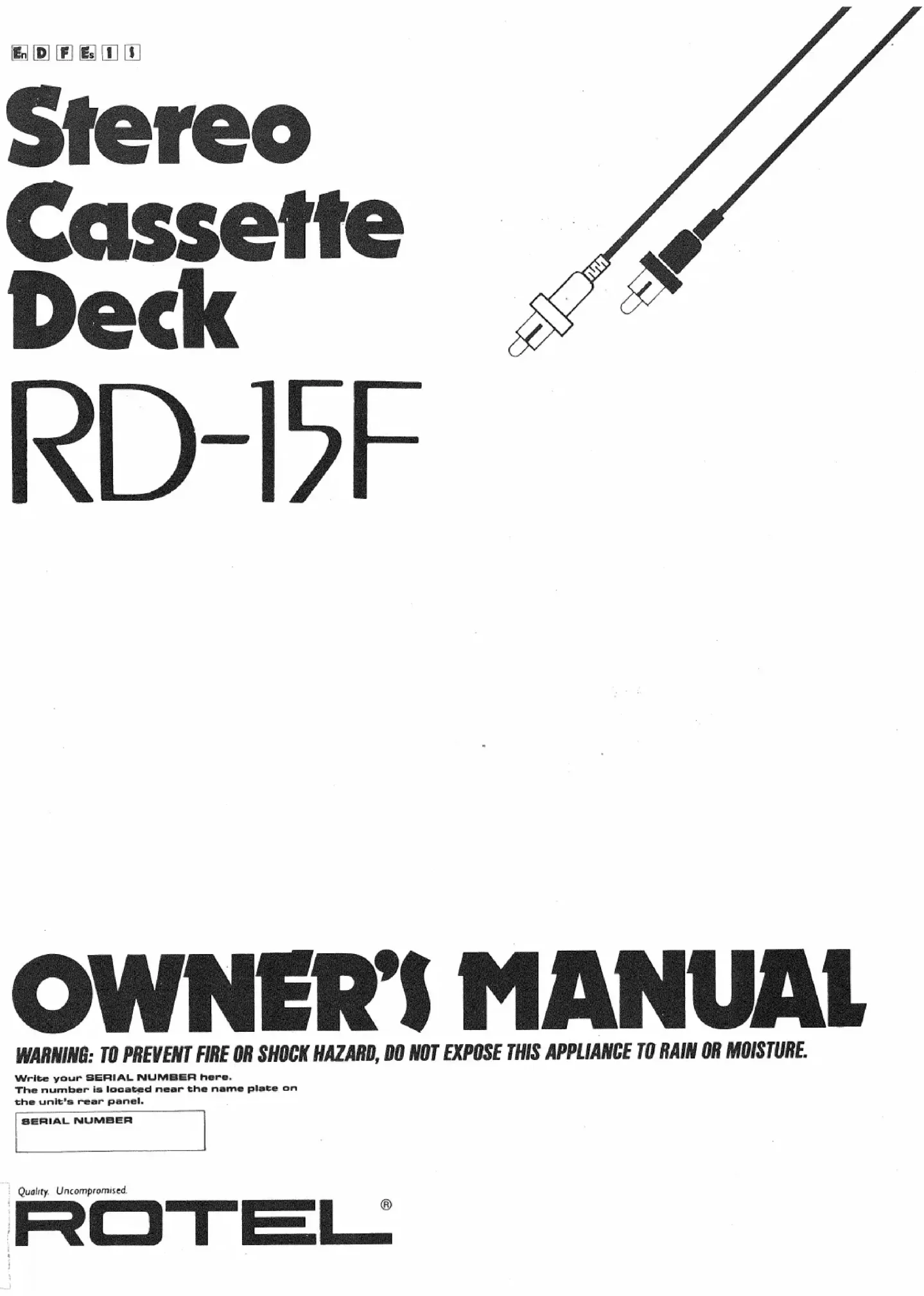 RD15F - Magnétocassete ROTEL - Notice d'utilisation et mode d'emploi gratuit