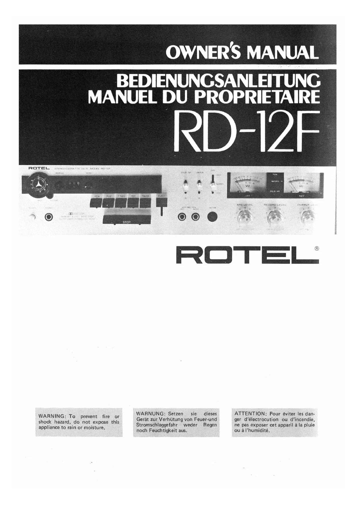 Retrouvez gratuitement la notice de l'appareil RD12F ROTEL au format PDF.